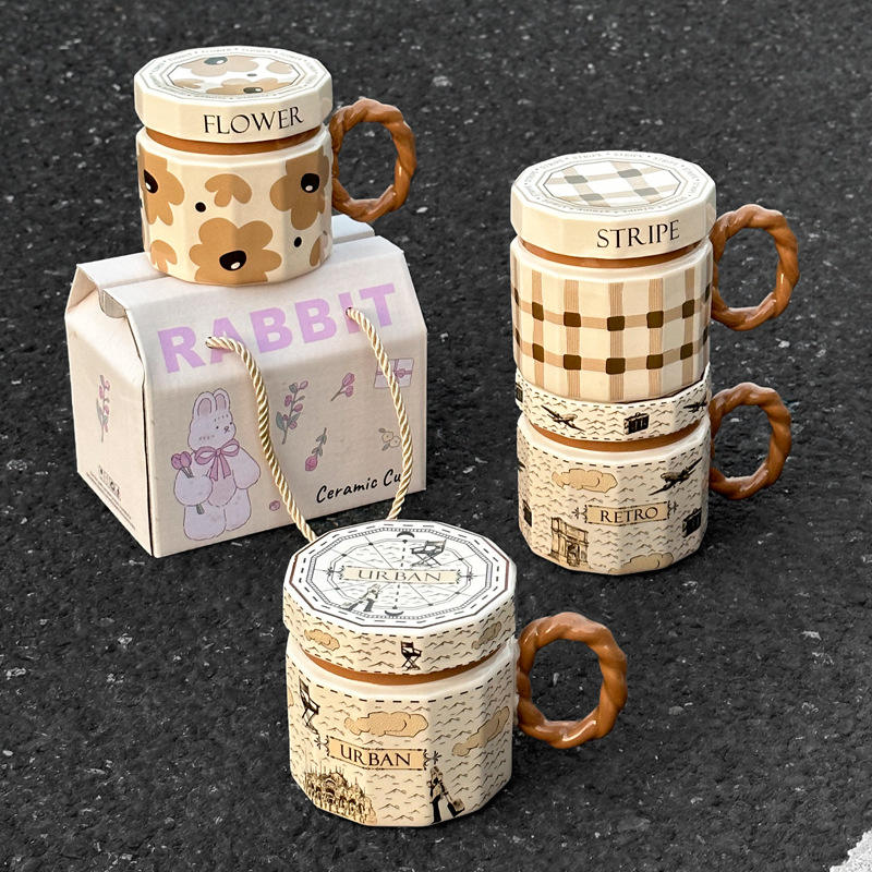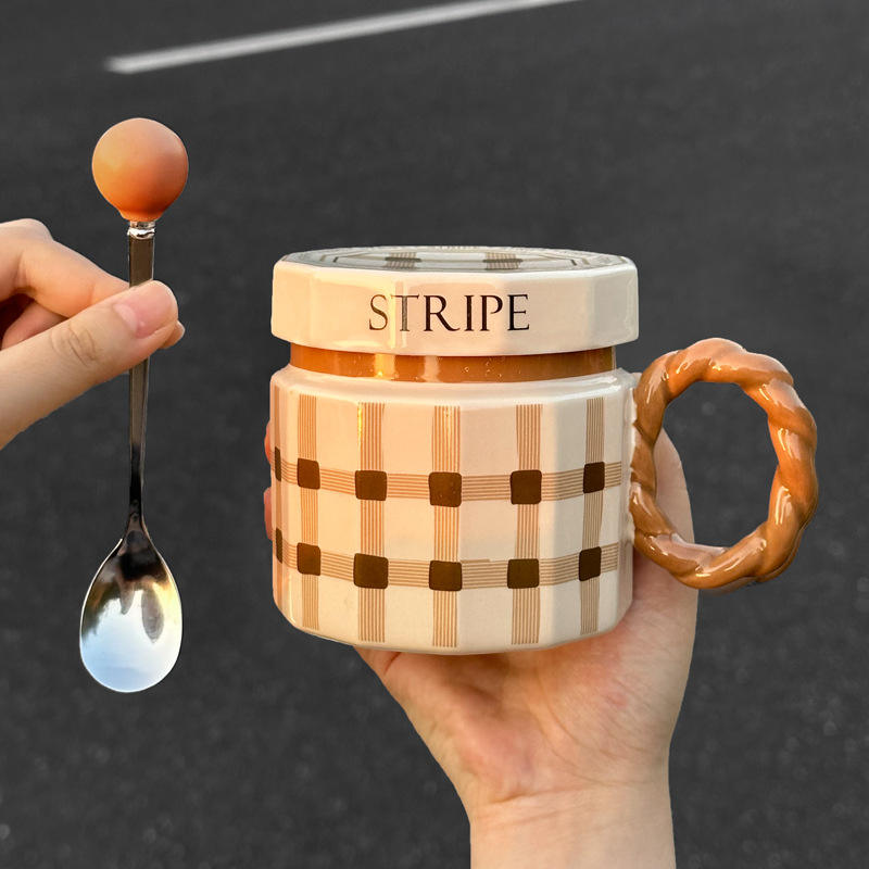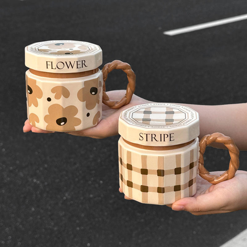 แก้วกาแฟเซรามิกระดับพรีเมียม ลายการ์ตูนเรียบง่าย ทำมือ พร้อมฝาปิด ใช้กับเครื่องล้างจานได้ เหมาะสำหรับผู้ชาย ผู้หญิง สำหรับกลับไปโรงเรียน