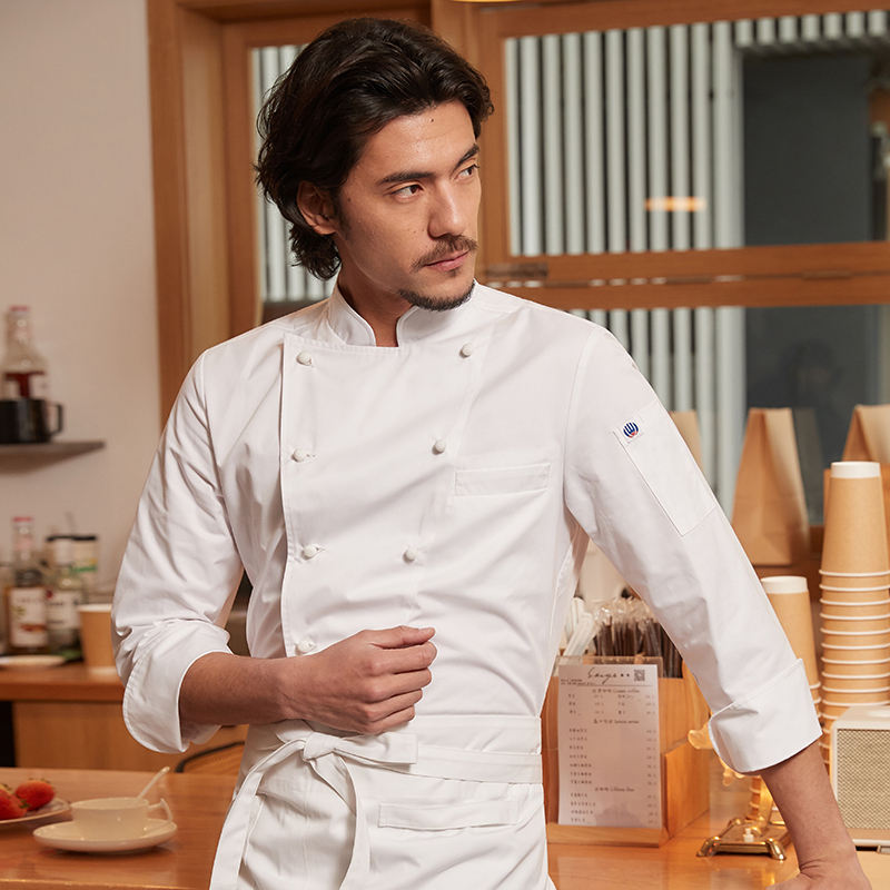เครื่องแบบพ่อครัวระดับไฮเอนด์เสื้อแขนยาวมีสไตล์สำหรับผู้ชายโรงแรมห้าดาวเสื้อผ้าสำหรับทำงานในครัวร้านอาหารตะวันตก