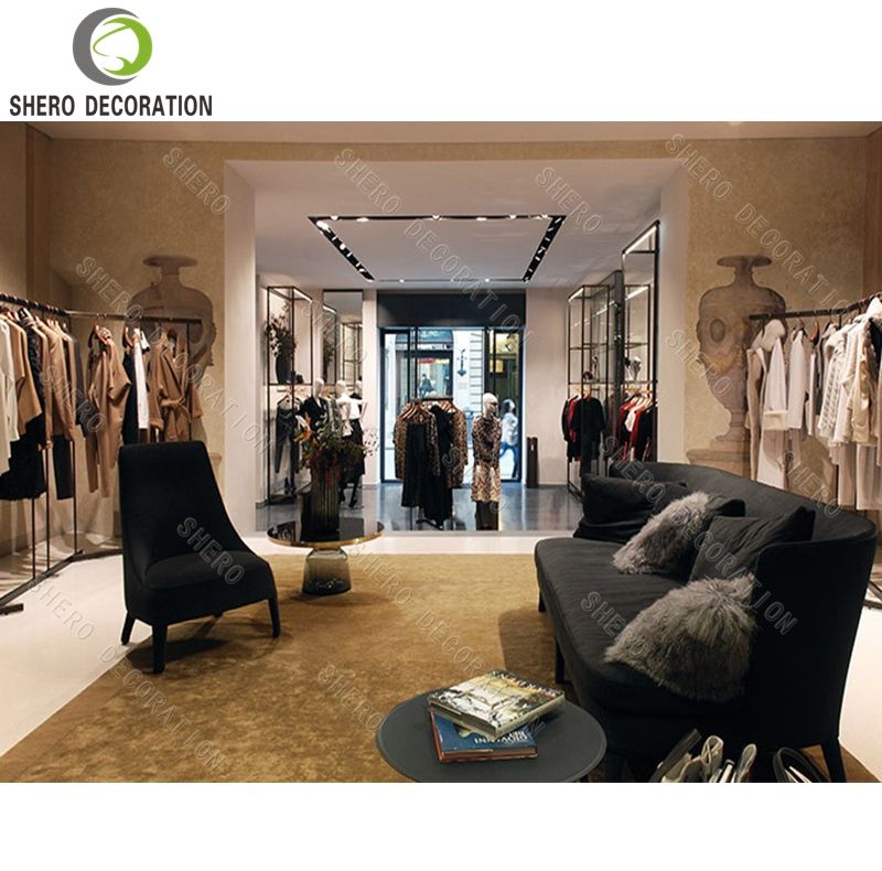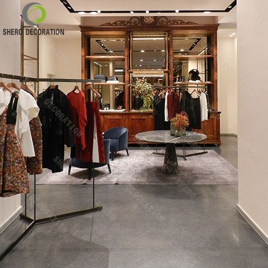 การออกแบบตกแต่งภายในร้านเสื้อผ้าระดับไฮเอนด์ ชั้นวางโชว์เสื้อผ้าแบบกำหนดเอง เฟอร์นิเจอร์ร้านเสื้อผ้า ชั้นวางโชว์เสื้อผ้า