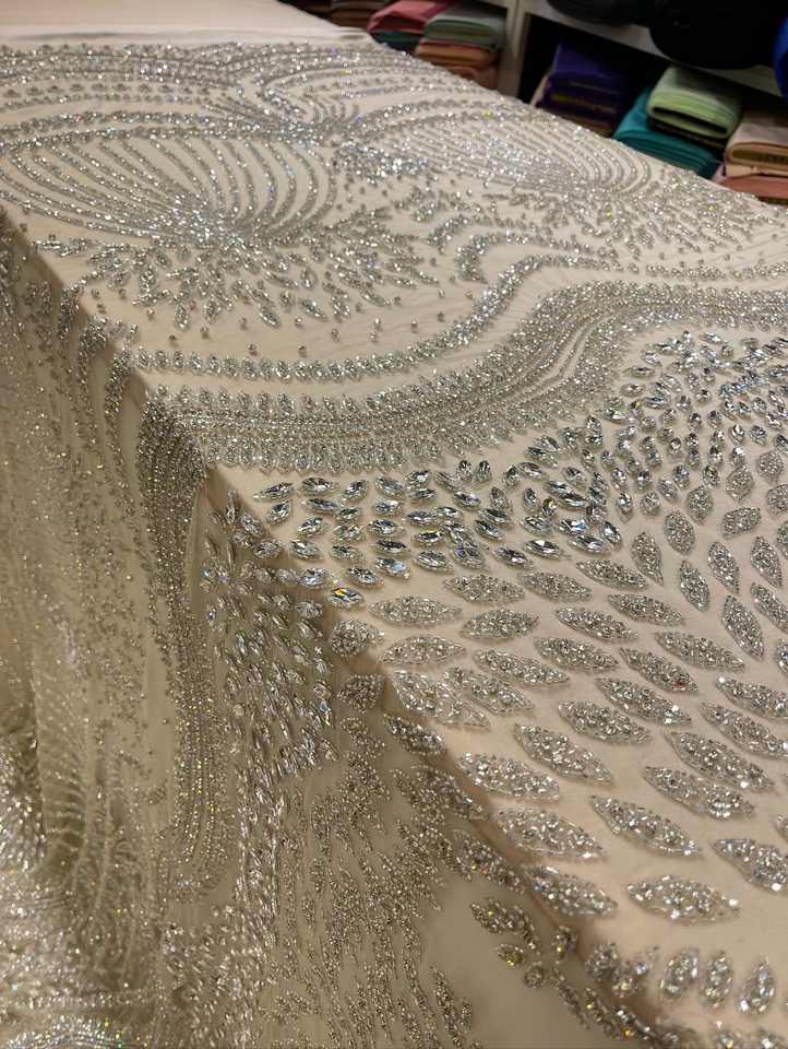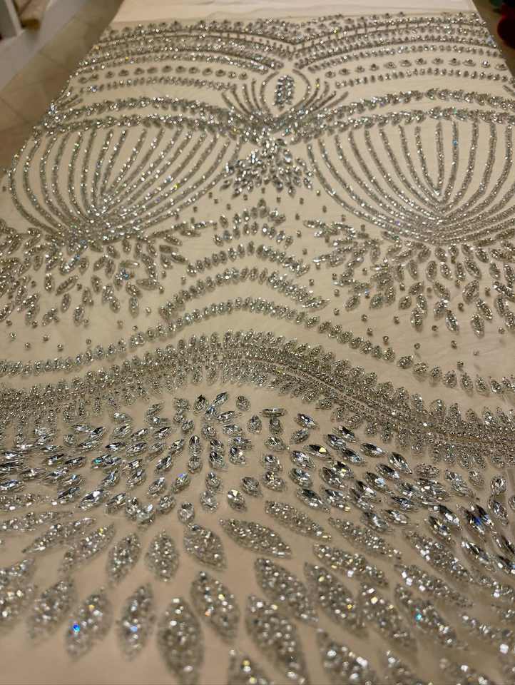 ผ้าปักลายคริสตัลคุณภาพสูงพร้อมลูกไม้ลายดอกไม้ วัสดุสำหรับออกแบบชุดราตรี ชุดเดรส และเสื้อผ้า