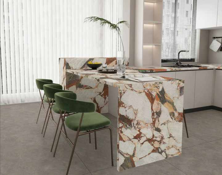 หินเผาสีชมพูเบลลี่แบบหยกเคลือบผิวแบบเผาพิเศษคุณภาพสูงสำหรับท็อปโต๊ะเครื่องแป้งในร่ม ท็อปโต๊ะ และการตกแต่ง