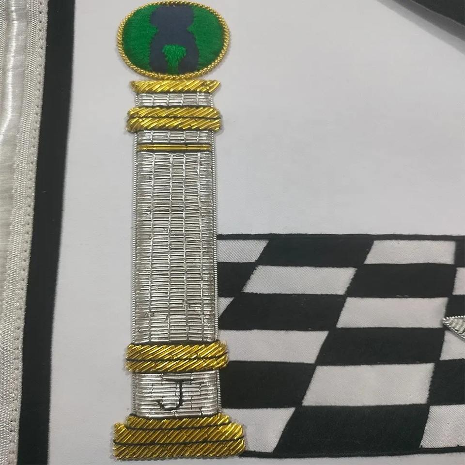 ผ้ากันเปื้อนออกแบบ 3 มิติ สำหรับพิธีกรรมมาสันระดับแกรนด์มาสเตอร์ สาหกัญชีสก็อตแลนด์ พร้อมโลโก้สั่งทำระดับไฮเอนด์ ตกแต่งด้วยลูกปัดปักลายโลหะคุณภาพสูง