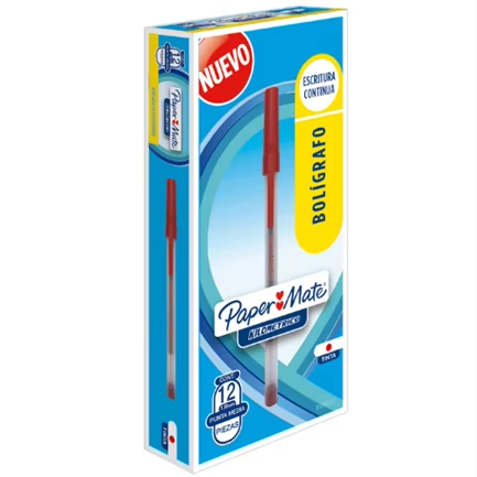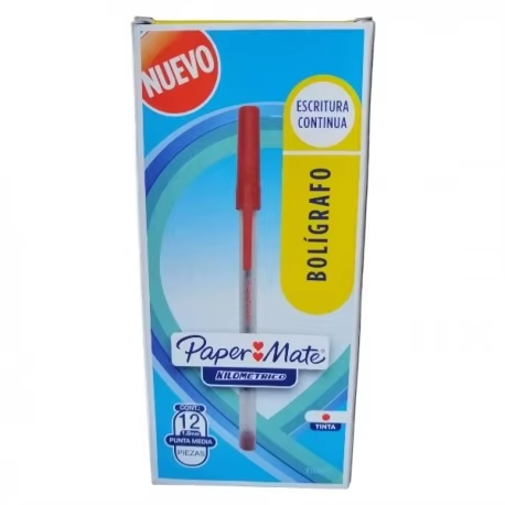 ปากกาลูกลื่นพลาสติกคุณภาพสูงแบบกำหนดเอง หมึกสีแดง ยี่ห้อ Papermate รุ่น Kilometrico Economy สำหรับใช้ในสำนักงานและโรงเรียน บรรจุกล่อง 12 ด้าม