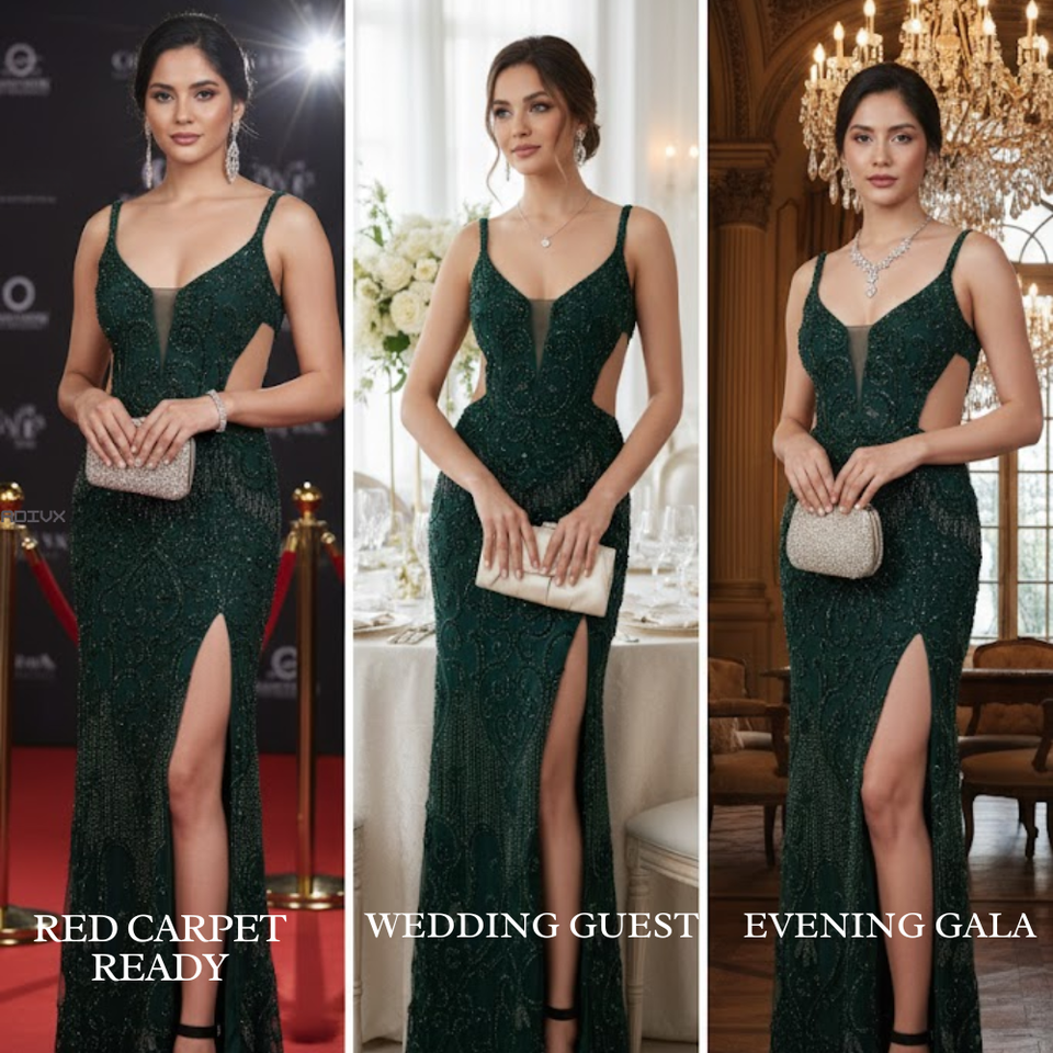 ชุดราตรีทรงเมอร์เมดหรูหราสำหรับผู้หญิง ดีไซน์เนอร์ระดับไฮเอนด์ พร้อมชายกระโปรงยาวสง่างาม | ชุดราตรีหรูหราสำหรับงานแต่งงาน งานกาล่า และออเดอร์ส่งออก