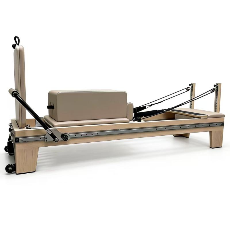 เครื่องปฏิรูปกายแบบพิลาทิส ทำจากไม้เมเปิลคุณภาพสูง ทนทาน ปรับได้ เหมาะสำหรับใช้ในสตูดิโอเชิงพาณิชย์ ดีไซน์รางเต็มตัว
