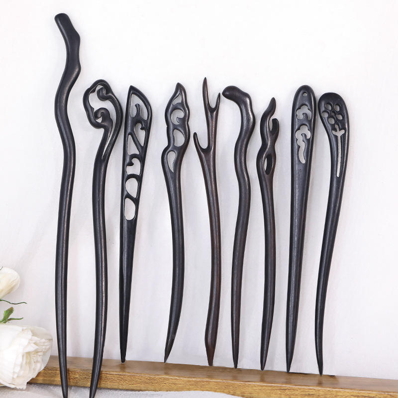 High-End Ebony Wood Hairpin Classic Chinese Style Sandalwood Hair Stick for Bun Updo Natural Purple Sandalwood Hair Accessory