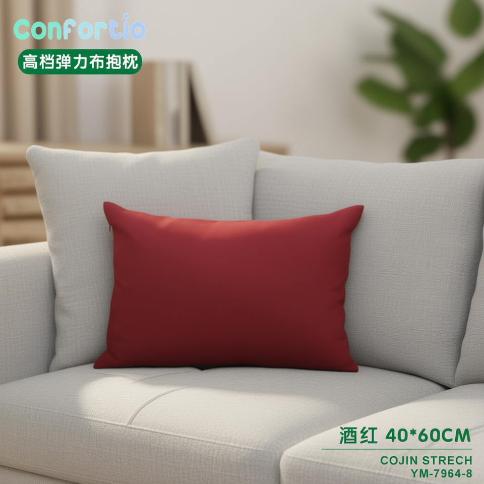 High-End Elastic Fabric Wine Red 40x60 Inches Stretchable Seat Cushion & Pillow with Polyester Filling