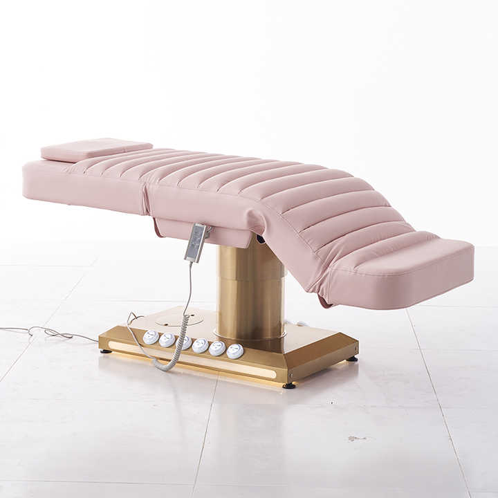 เตียงนวดหน้าไฟฟ้าระดับไฮเอนด์ - เตียงทรีทเมนต์ปรับเอนได้พร้อมฐานสีทองสำหรับสปา