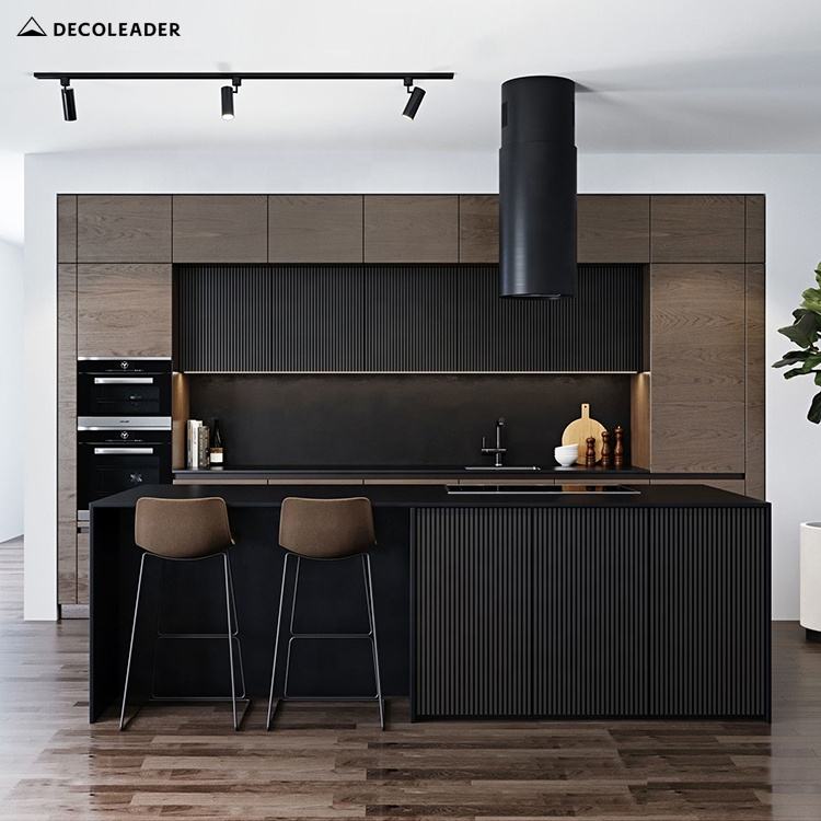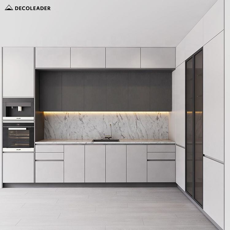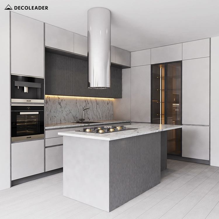 โครงการหรูหราระดับไฮเอนด์ตู้ครัวแสงสีเทาเข้มประตูบุปรับแต่งสำหรับโครงการ