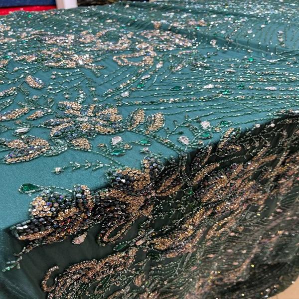 ผ้าลูกไม้ปักลายคุณภาพสูงประดับด้วยลูกปัดและเลื่อมอย่างหนาแน่น สำหรับชุดแต่งงาน ชุดราตรี ชุดงานเลี้ยง และแฟชั่นหรูหรา