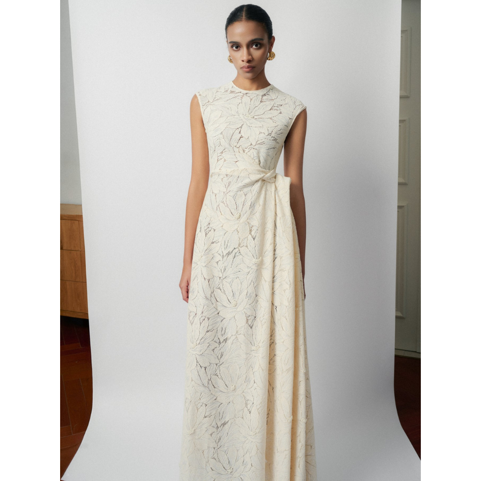 High-End Fashion Dresses Women Lady Elegant Hand-Sewn Nella Emb Lace Draped Midi Dress High-Quality Clothing Manufacturers