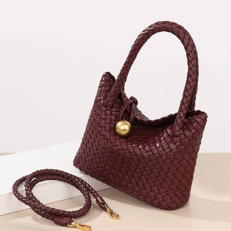 กระเป๋าสะพายข้างผู้หญิงลายเรขาคณิตแฟชั่นระดับไฮเอนด์ ทำจากวัสดุ PU ทอ พร้อมหูหิ้วเดี่ยว ซับในโพลีเอสเตอร์ ปิดด้วยกระดุม