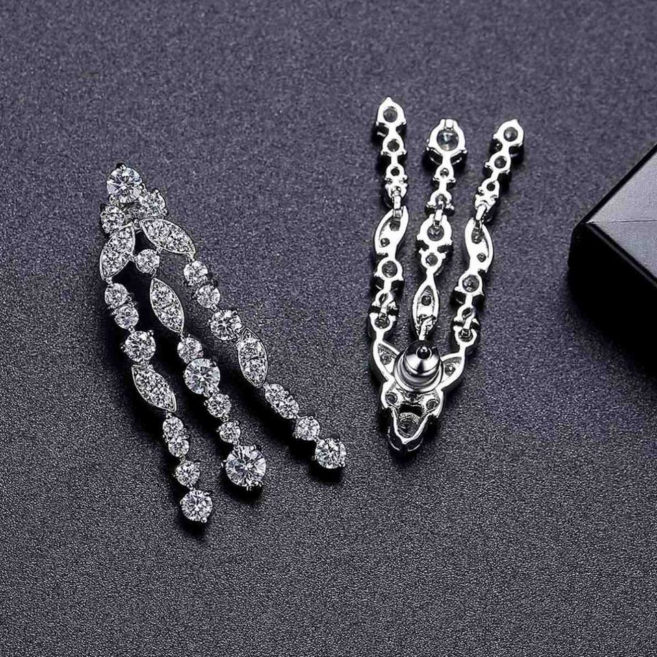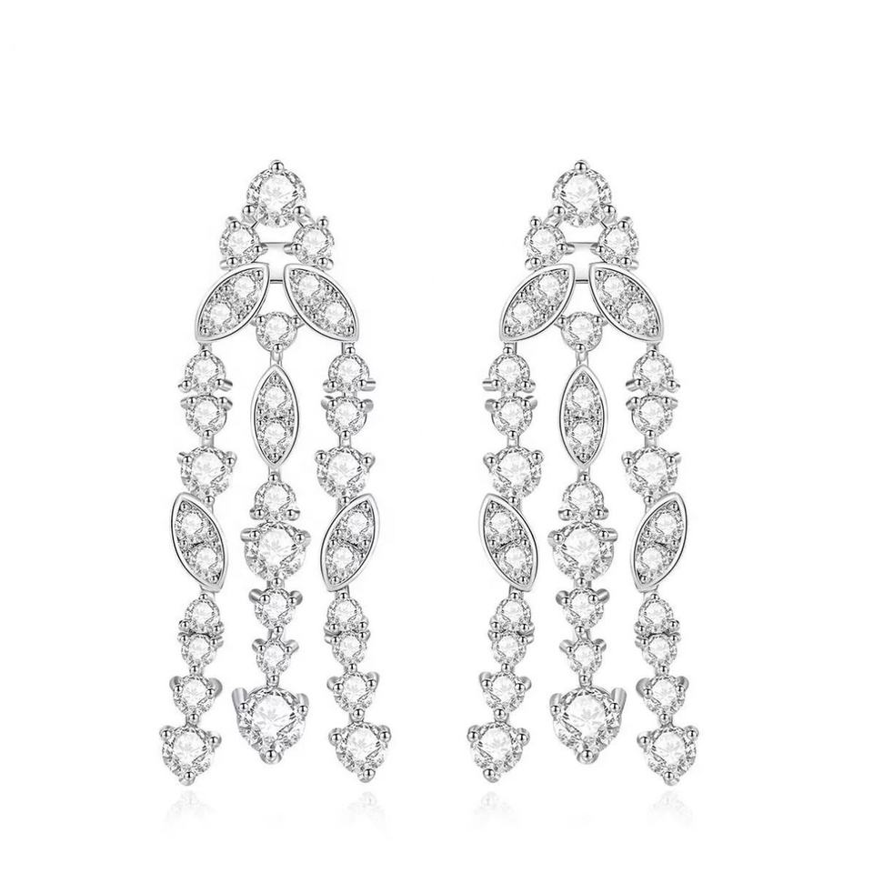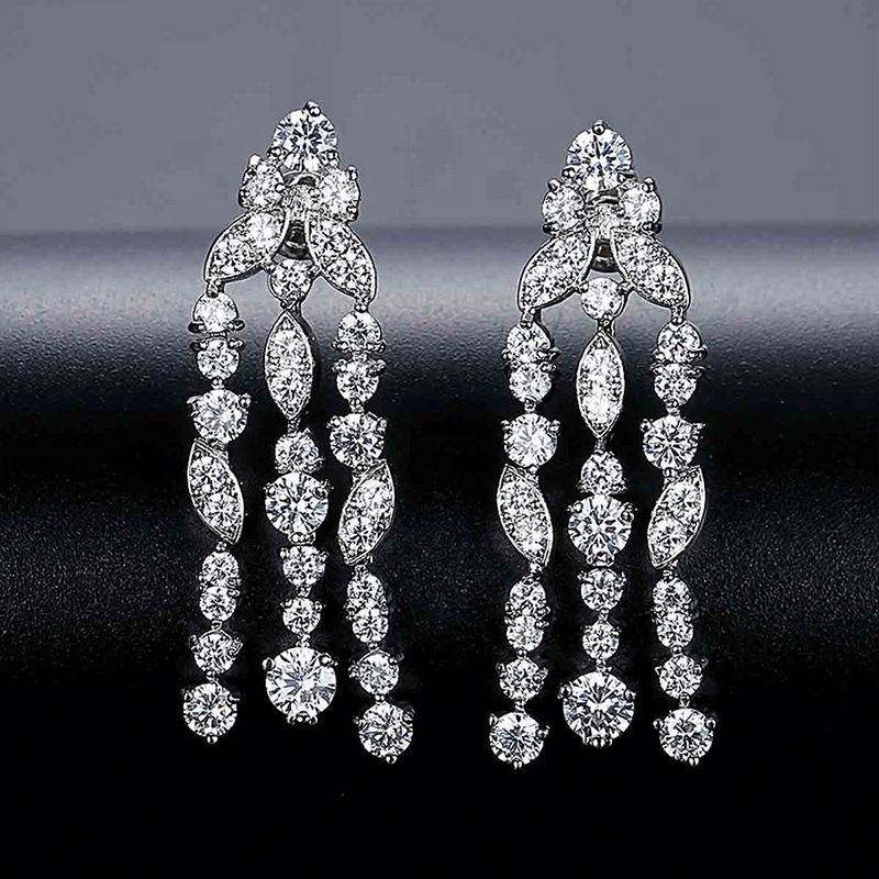 ต่างหูห้อยเซอร์คอนชุบทองแฟชั่นระดับไฮเอนด์มีพู่ห้อยสไตล์เครื่องประดับสำหรับเจ้าสาวในงานครบรอบ