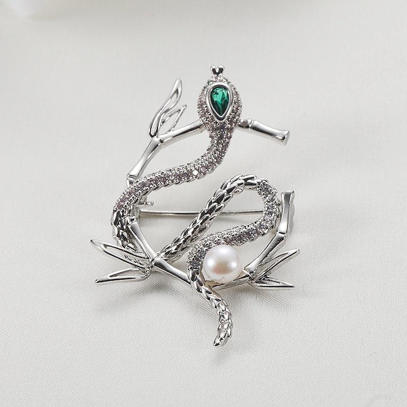 เข็มกลัดหรูหราสไตล์ผู้หญิง ดีไซน์ใบไผ่ งูทอง ประดับมุกน้ำจืด สำหรับติดเสื้อสูท ใช้เป็นของขวัญ