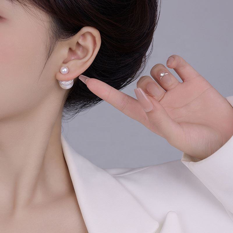 ต่างหูมุกฝรั่งเศสระดับไฮเอนด์ประดับเพชรซิคอนดีไซน์เรียบง่ายอเนกประสงค์ ด้านหน้าด้านหลังดีไซน์หรูหราทันสมัย
