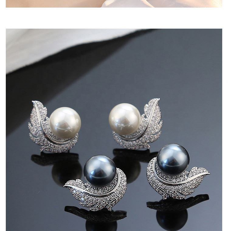 ต่างหูสไตล์ฝรั่งเศสสุดหรู ประดับเพทายรูปขนนกและมุก ดีไซน์เรขาคณิตชุบทองคำแท้ สำหรับเป็นของขวัญ
