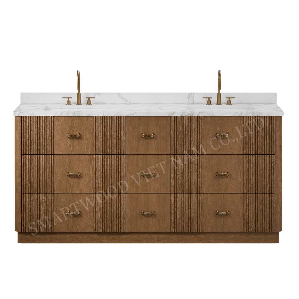 โครงสร้างไม้เนื้อแข็งโต๊ะเครื่องแป้งในห้องน้ำสไตล์ฝรั่งเศสไฮเอนด์
