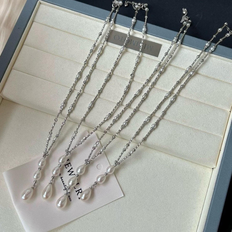 สร้อยคอไข่มุกน้ำจืดแท้คุณภาพสูง ประดับเงินแท้และเพชรระยิบระยับ สไตล์ลูกปัด ดีไซน์เรียบหรู ดูดีมีระดับ