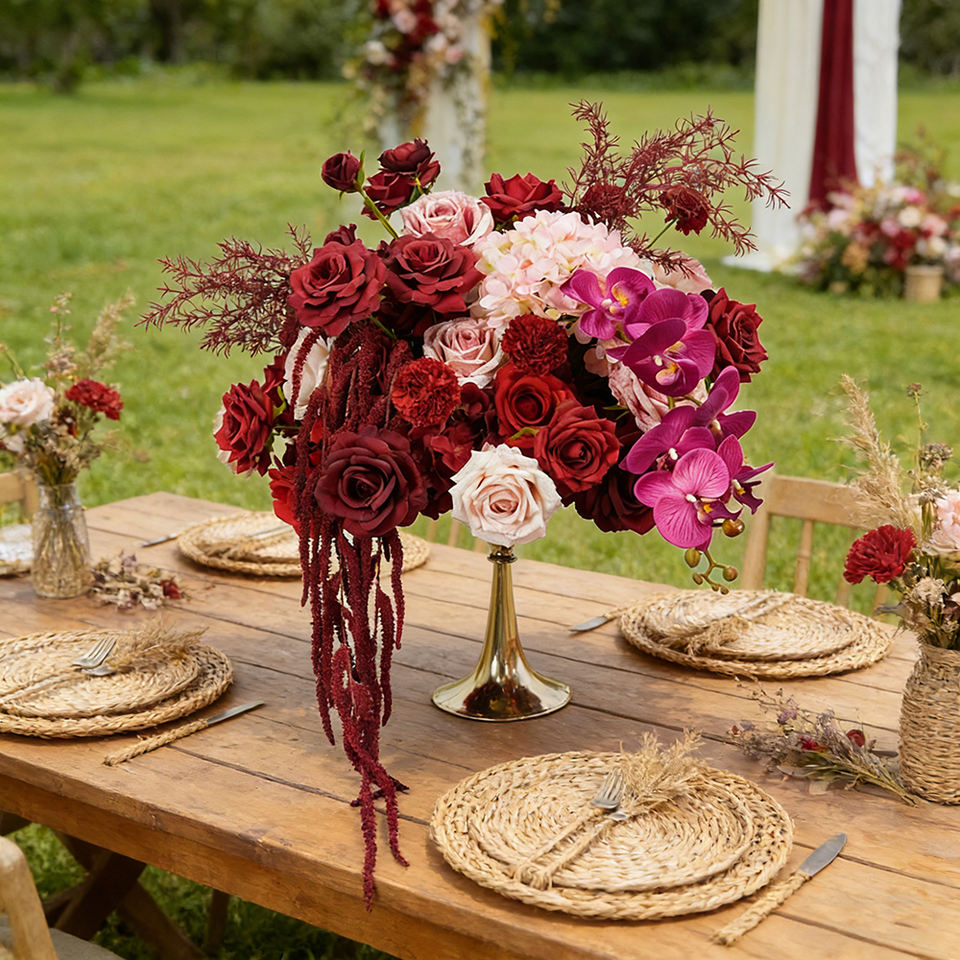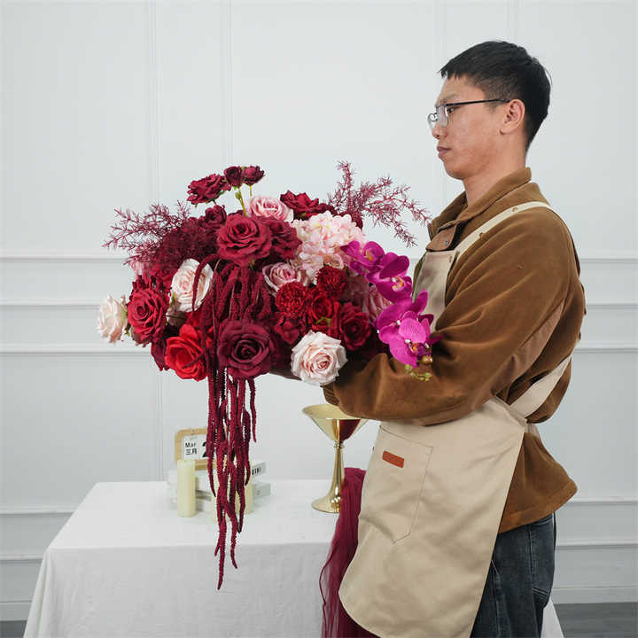 ดอกไม้ประดิษฐ์สีชมพูฟูเชียผสมสีสันสดใส ขนาด 40 ซม. คุณภาพสูง สำหรับตกแต่งงานแต่งงาน/วันแม่/งานอีเว้นท์บนเวที