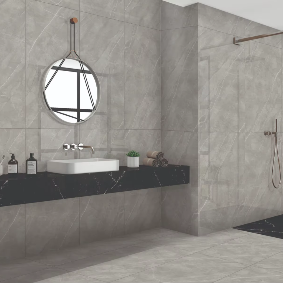 กระเบื้องปูพื้นและผนังพอร์ซเลนสีเทาระดับไฮเอนด์ ผิวด้านทันสมัย ขนาด 60x120 ซม. กันลื่น ทนความร้อน ทนทาน เหมาะสำหรับตกแต่งภายใน