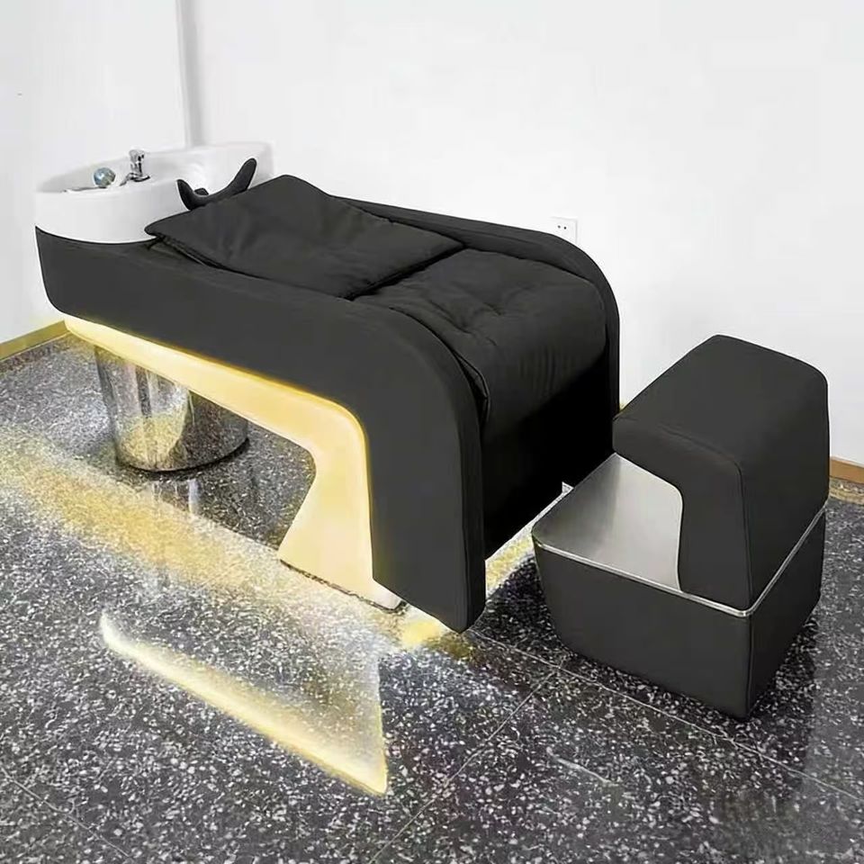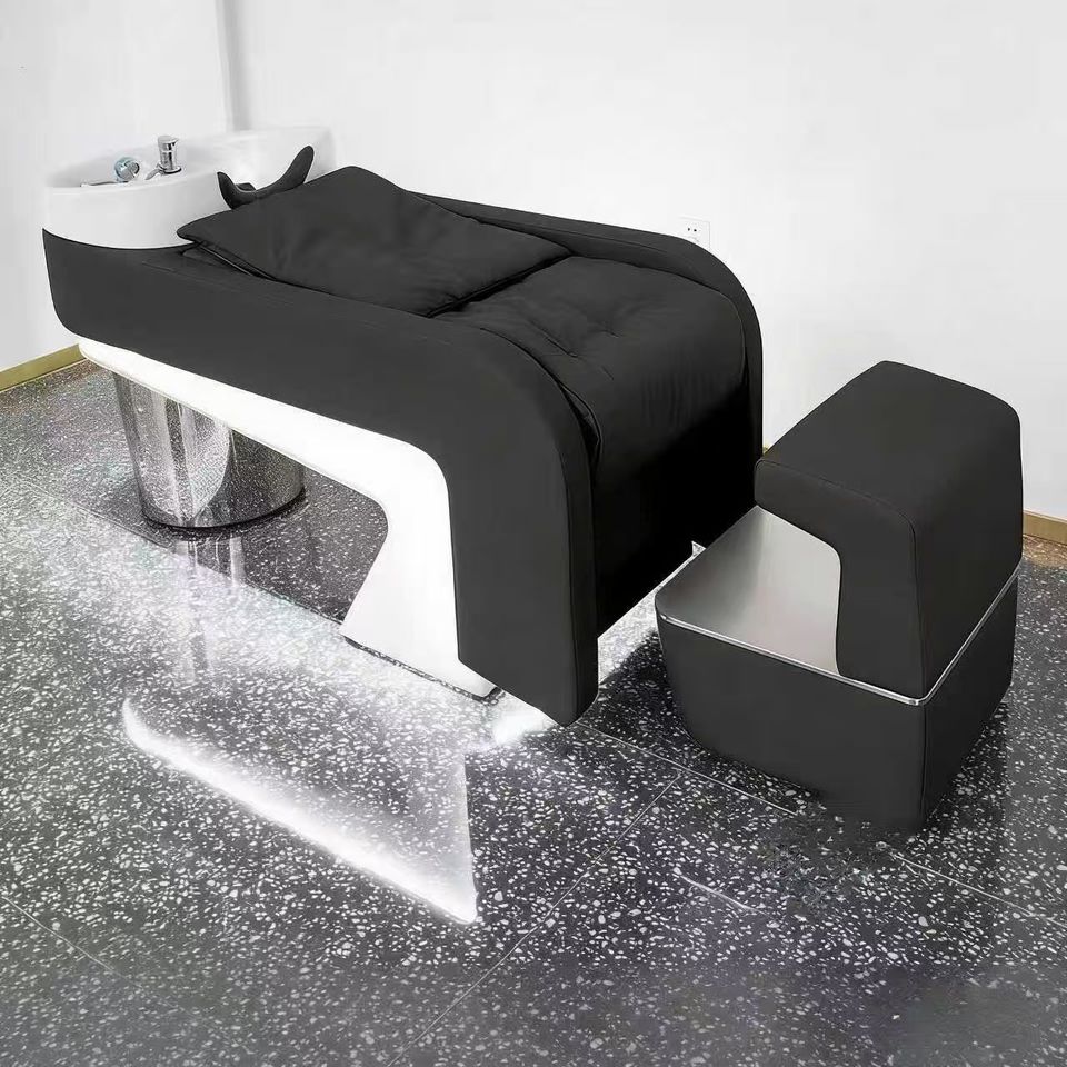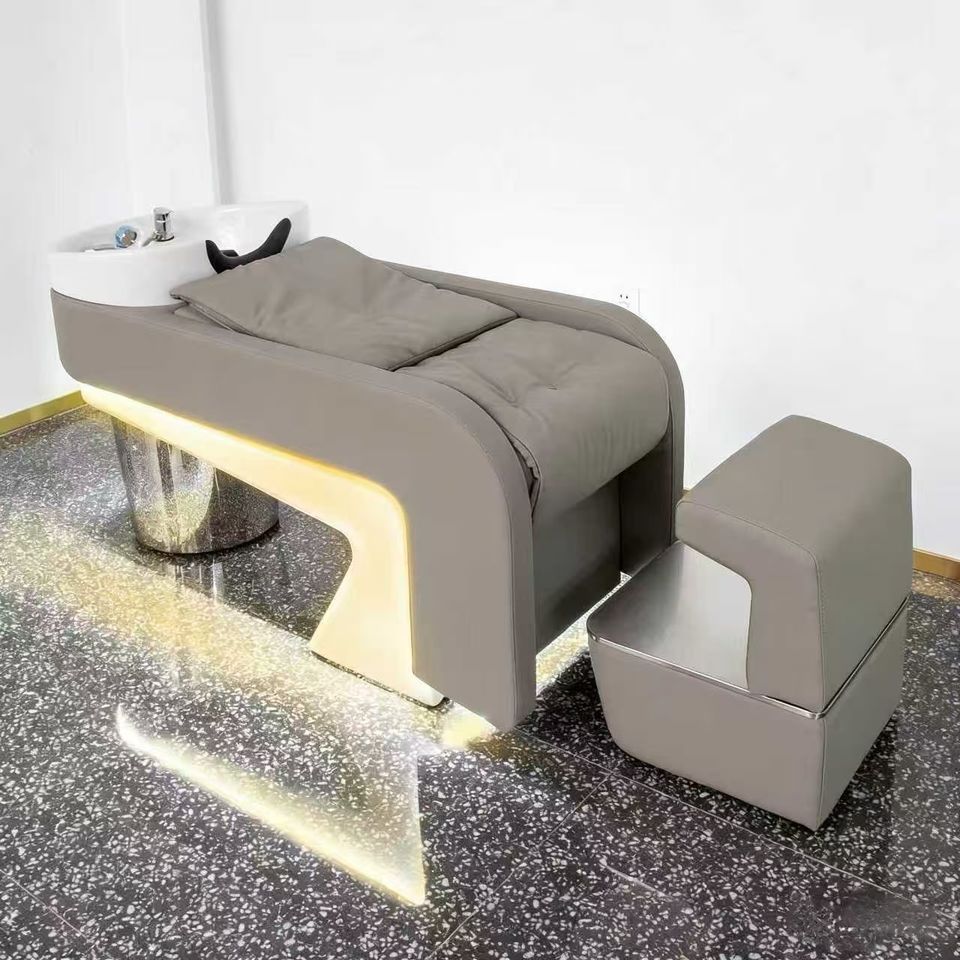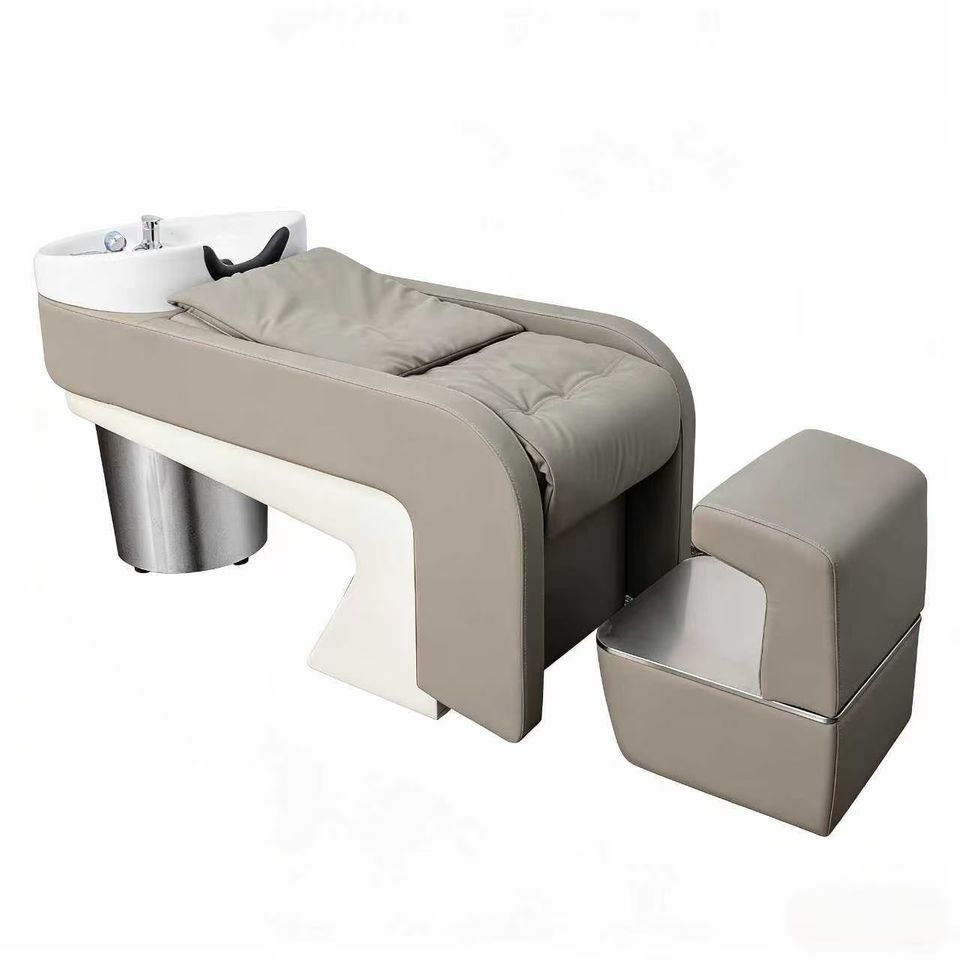 เตียงสระผมเซรามิกสำหรับร้านทำผมระดับไฮเอนด์ แบบกึ่งเอนนอน พร้อมฟังก์ชั่นนวดและล้างผม