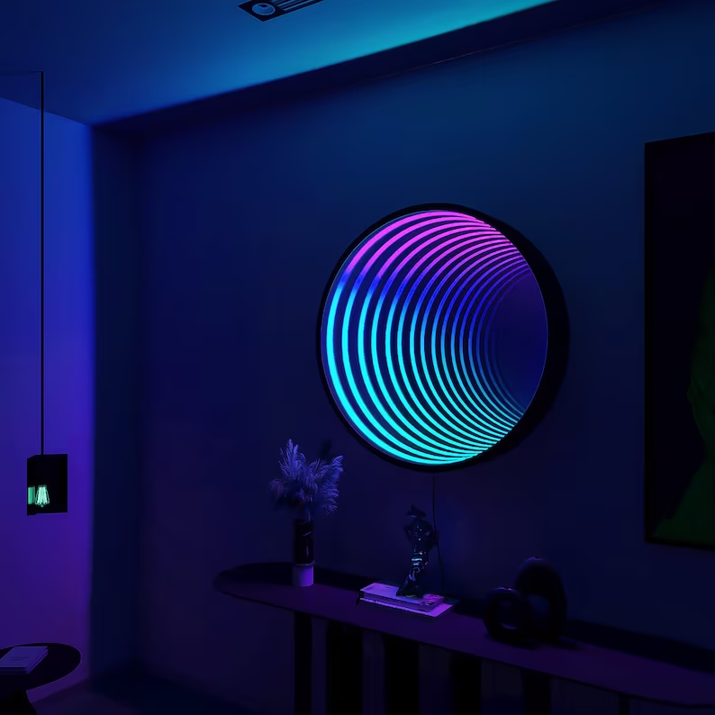 High-Endอัจฉริยะ 3D Abyss แสงแก้วโมเดิร์นโฮมโรงแรมอินฟินิตี้กระจกไฟ LED แขวนผนัง Decor