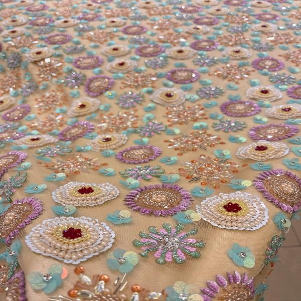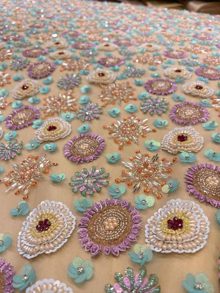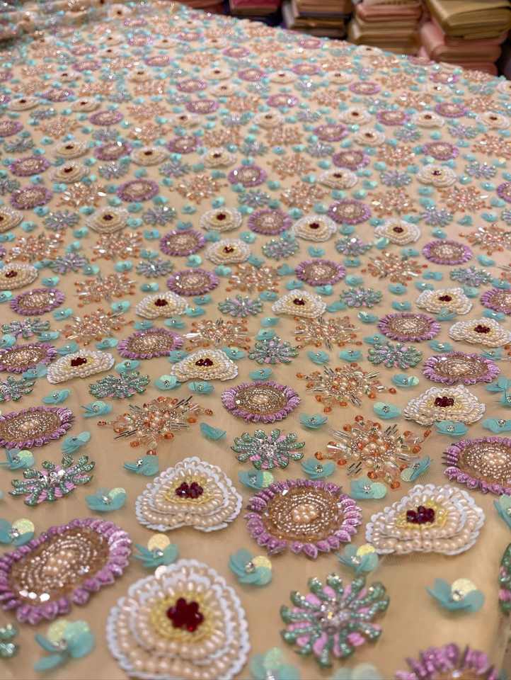 ผ้าลูกไม้คุณภาพสูงพร้อมงานปักลูกปัดหนักแน่น สำหรับชุดเจ้าสาว ชุดราตรี เสื้อผ้าดีไซเนอร์ ใช้ในอุตสาหกรรมแฟชั่นหรูหรา