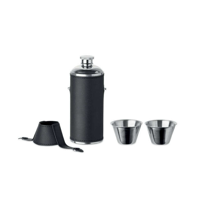 High End Leather Wrapped Canteen Set Four Stainless Steel Cups Six Ounce Pocket Size Liquor Holder For Travel Use