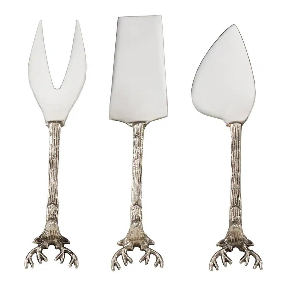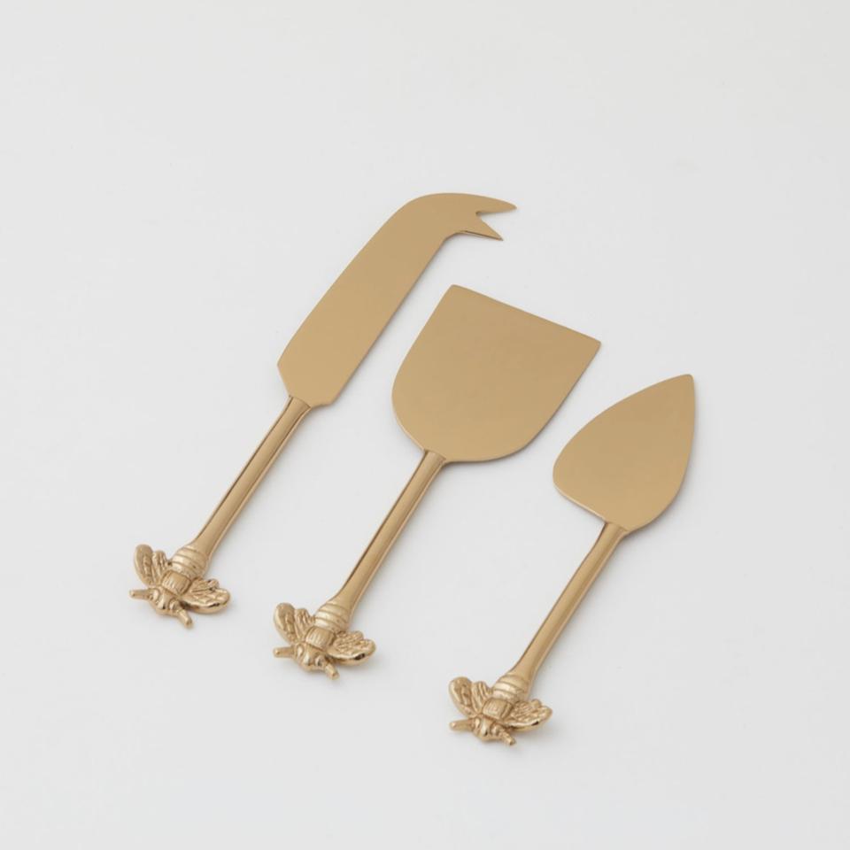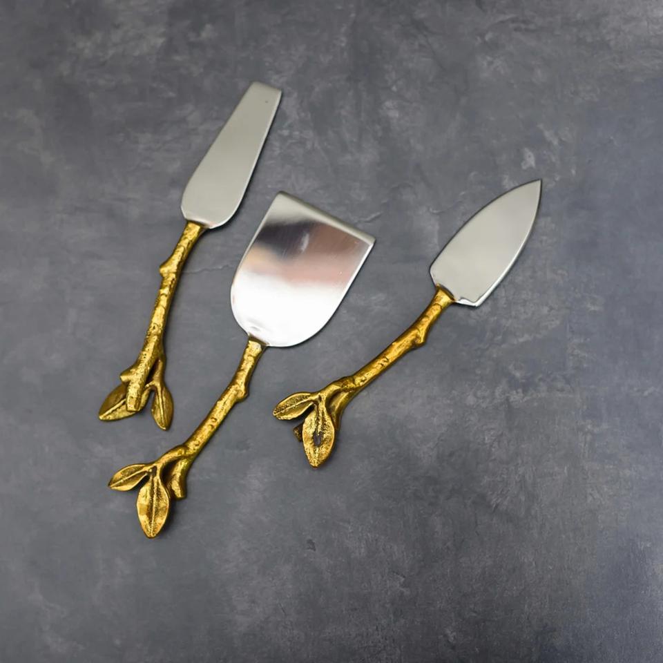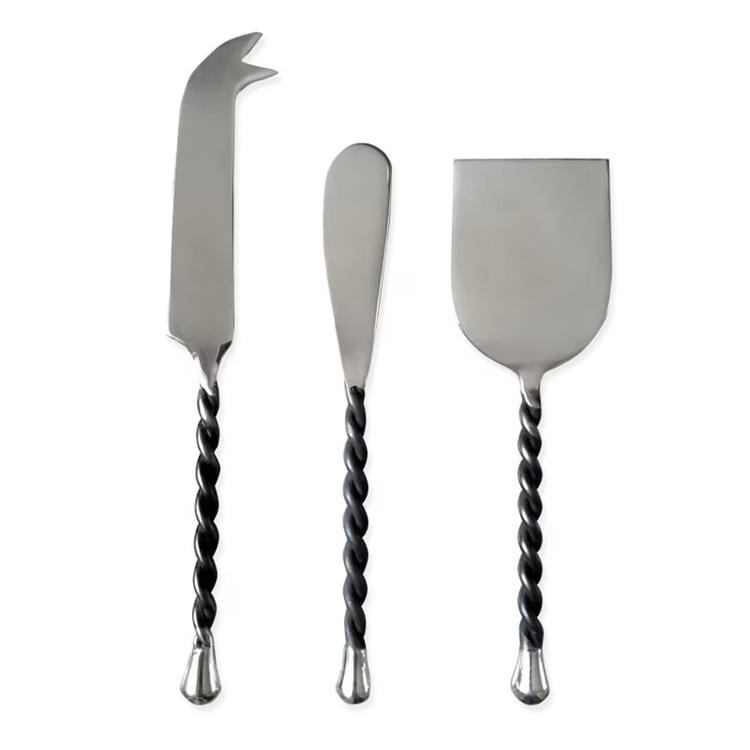 ชุดมีดชีสดีไซน์หรูสำหรับใช้ในบ้าน ชุดอุปกรณ์บนโต๊ะอาหารโลหะเคลือบทองเงางามทันสมัยสำหรับโรงแรมและร้านอาหาร