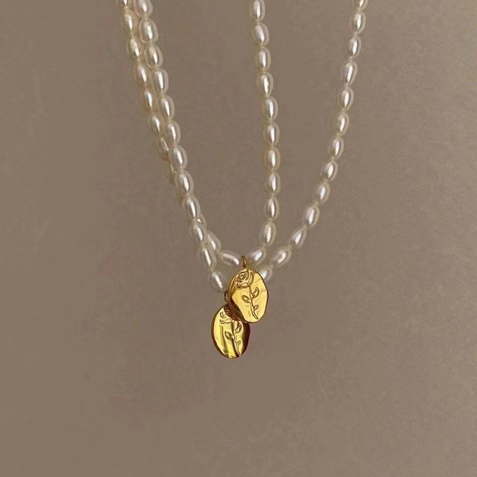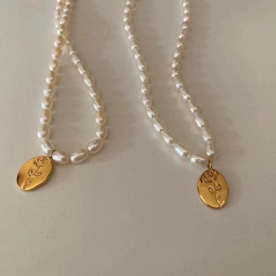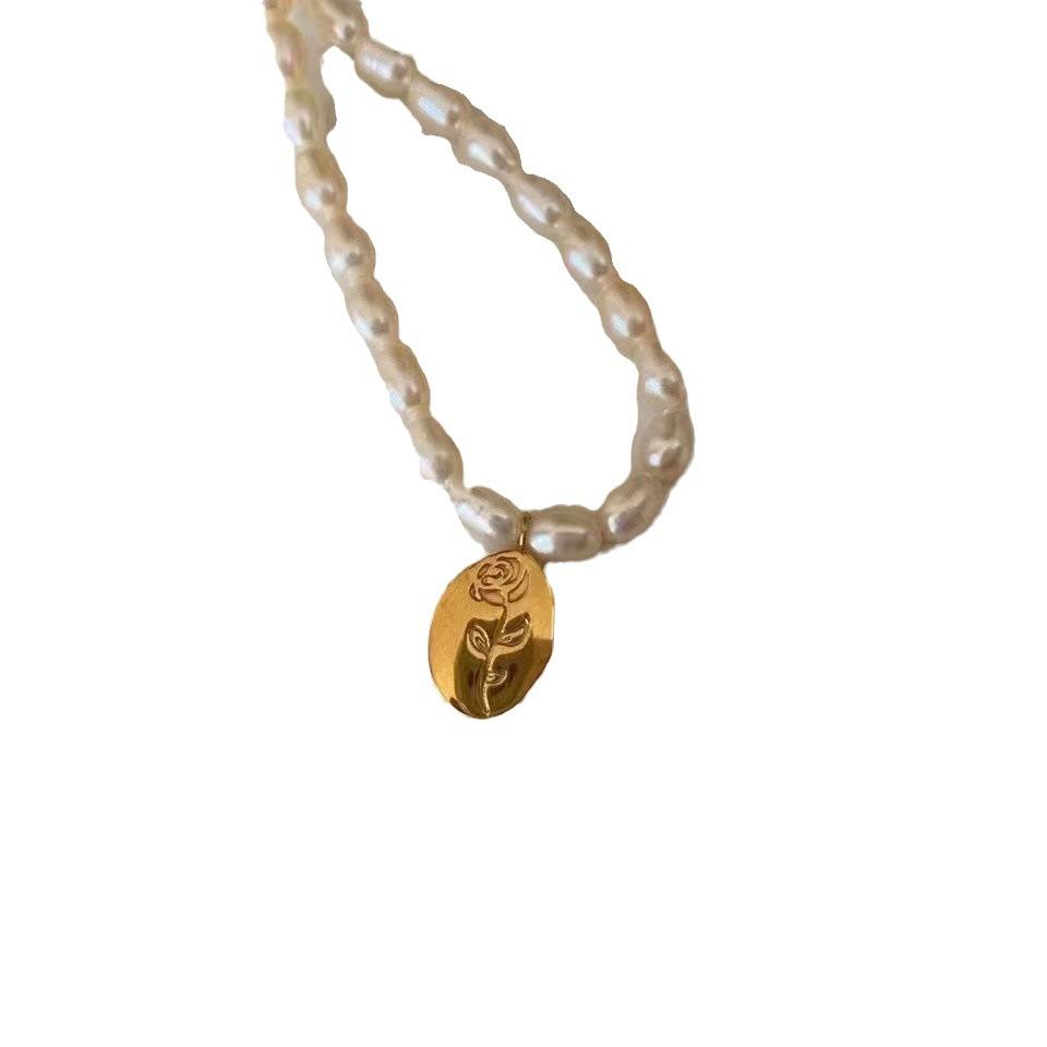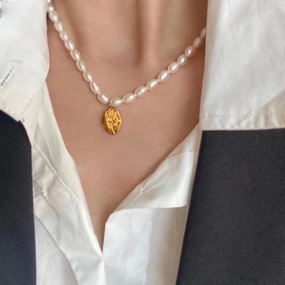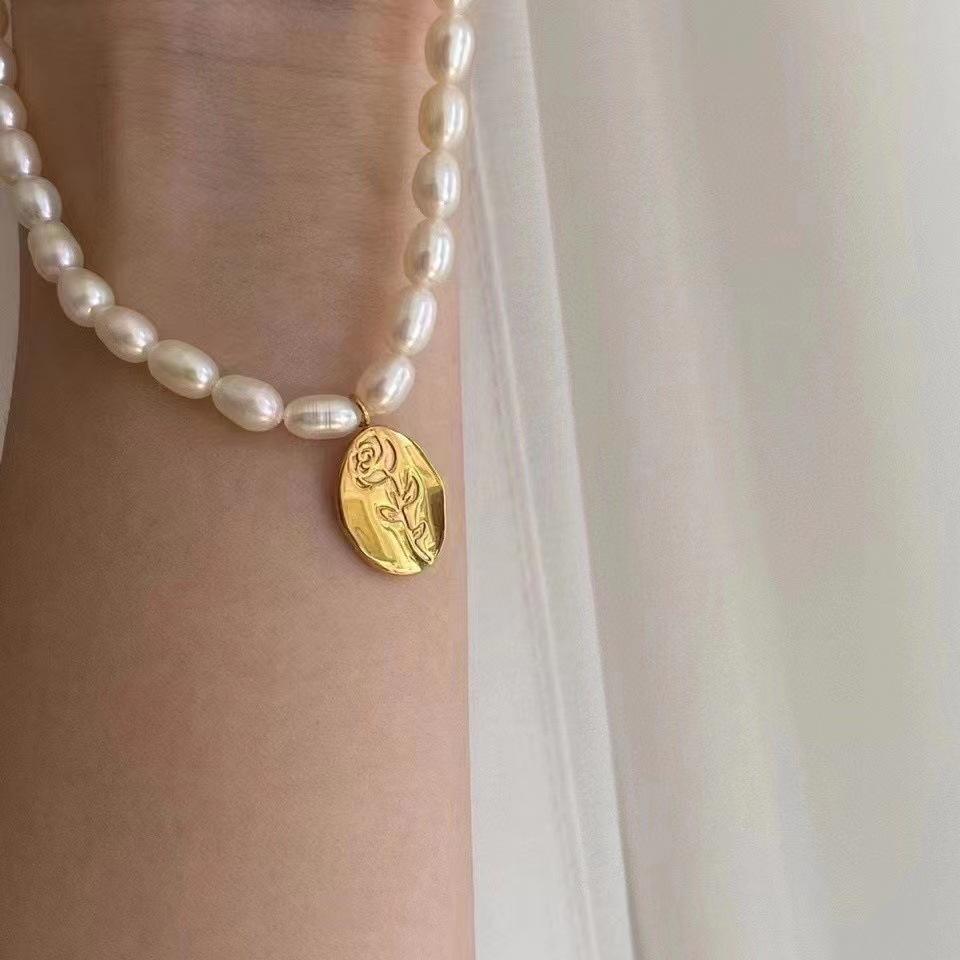 สร้อยคอหรูหรา ระดับไฮเอนด์ ไข่มุกน้ำจืดธรรมชาติ จี้สีชมพูอ่อน สร้อยคอแฟชั่นยอดนิยม ดังในโซเชียล