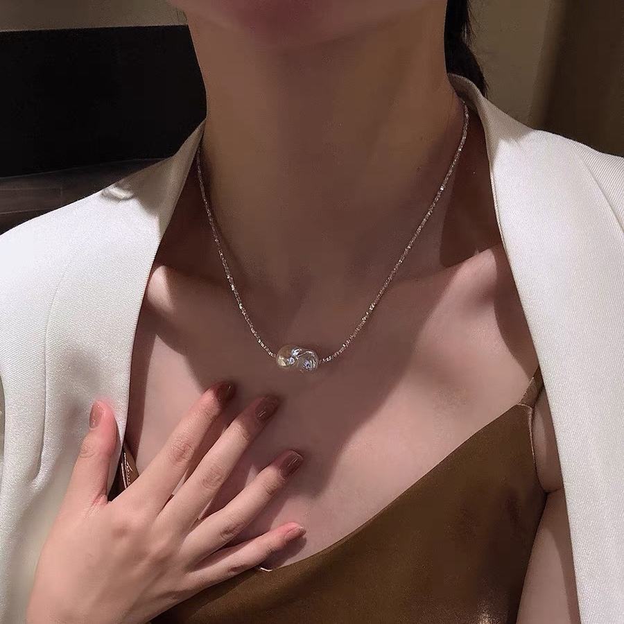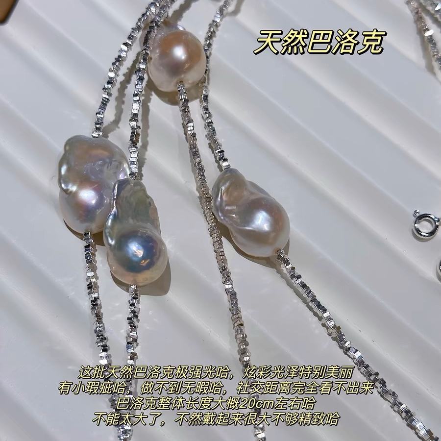 สร้อยคอหรูหราไฮเอนด์ เงินแท้ S925 ประดับด้วยไข่มุกบาร็อคธรรมชาติ ดีไซน์ประณีต สร้อยคอระดับไนช์ หรูหราเบาๆ
