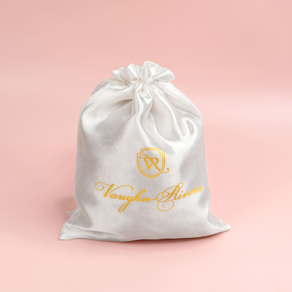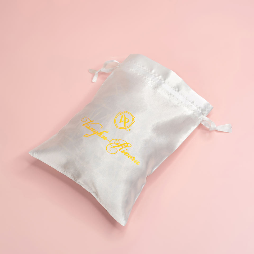 ถุงผ้าซาตินหรูหราคุณภาพสูงแบบมีเชือกผูก สำหรับใส่รองเท้า กระเป๋าถือ ของใช้เกี่ยวกับผม บรรจุภัณฑ์ พร้อมสกรีนโลโก้ ถุงเก็บวิกผม ถุงผ้าไหม