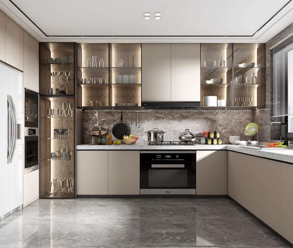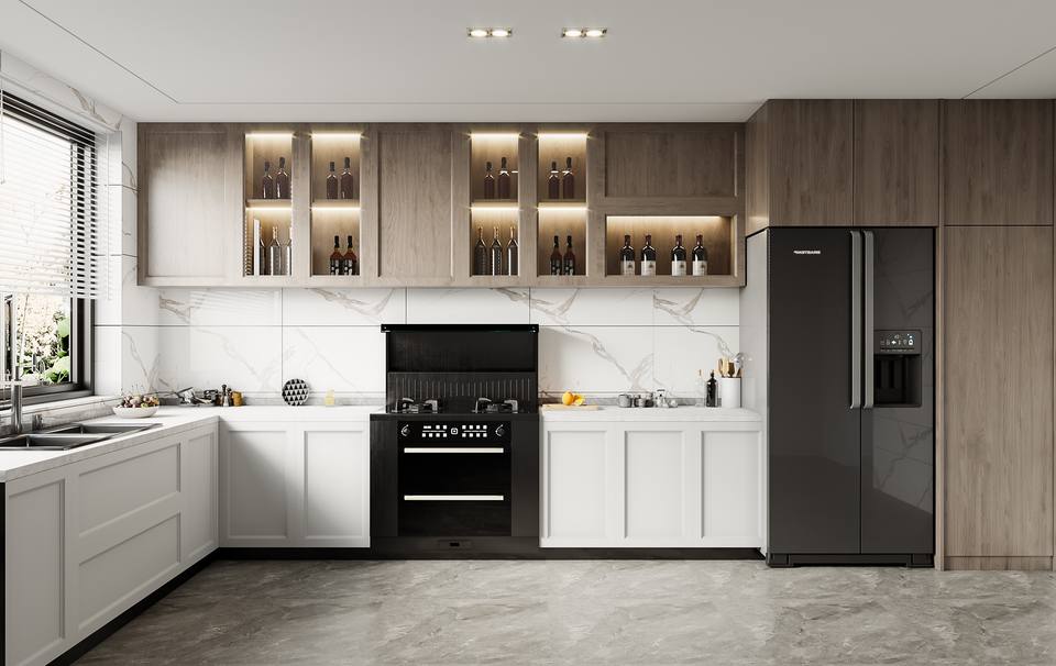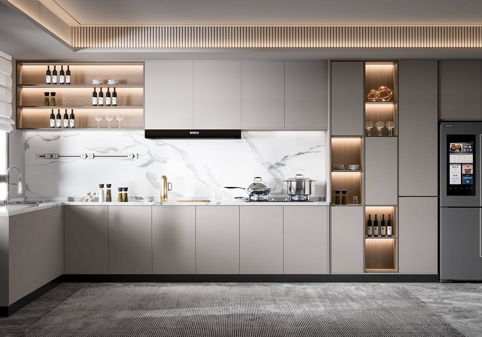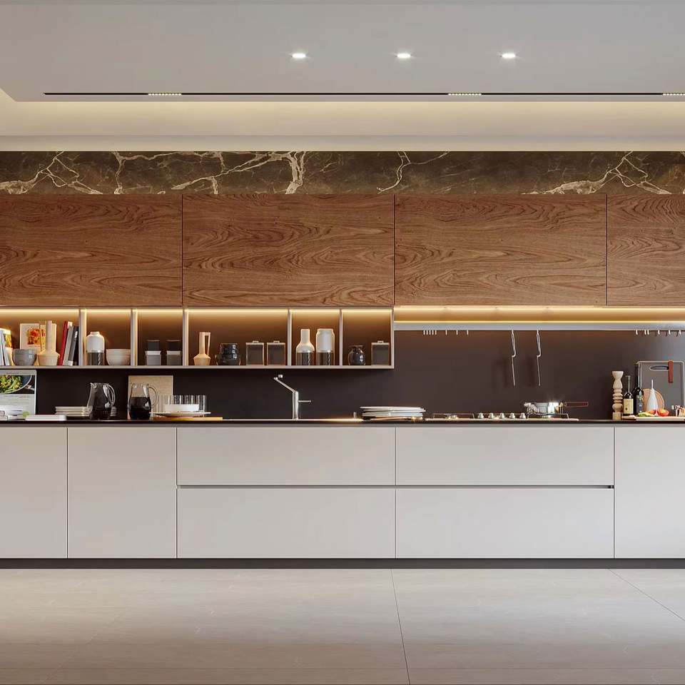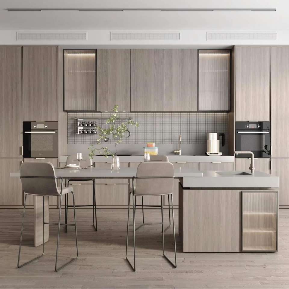 ชุดตู้ครัวไม้เนื้อแข็งระดับไฮเอนด์สุดหรู พร้อมลิ้นชักเฉพาะทาง เกาะกลางอเนกประสงค์ ดีไซน์ทันสมัยเป็นมิตรกับสิ่งแวดล้อม