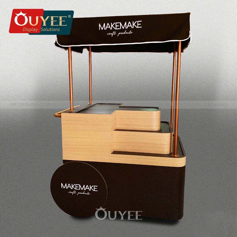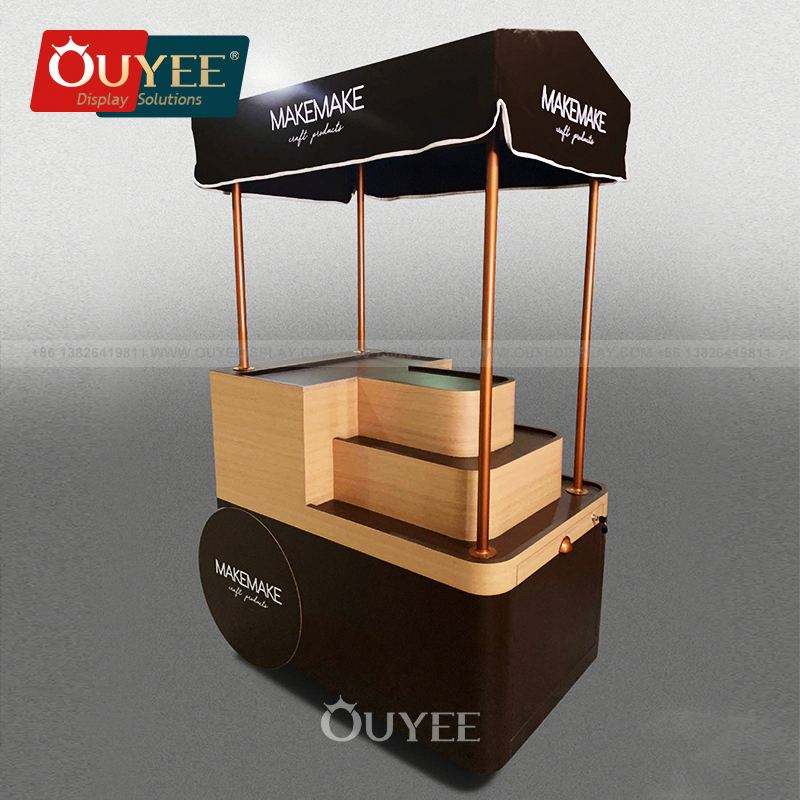High End Mall Kiosk Ideas Light Led Retail Showcase Candy Cart Wood Display Carts With Wheels for Event