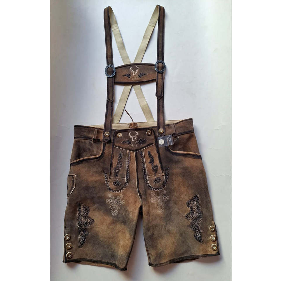 ชุดเครื่องแต่งกายเยอรมันแบบดั้งเดิมสำหรับผู้ชายระดับไฮเอนด์ ชุด Lederhosen สำหรับเทศกาลอ็อกโทเบอร์เฟสต์ ทำจากหนังแท้ ไซส์ใหญ่ ดีไซน์แบบดั้งเดิม