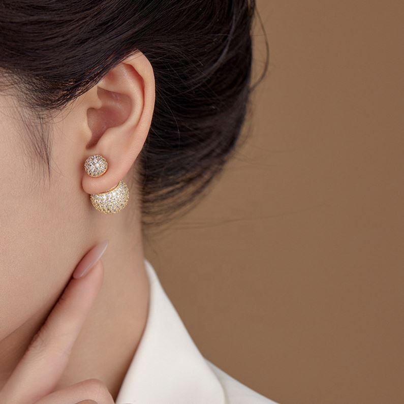 ต่างหูเซอร์โคเนียฝังประณีตระดับไฮเอนด์ ดีไซน์เรขาคณิตทันสมัย หรูหราเบาๆ แบบติดหูหน้า-หลัง ดีไซน์สำหรับผู้หญิง ชุบทอง เหมาะสำหรับเป็นของขวัญ