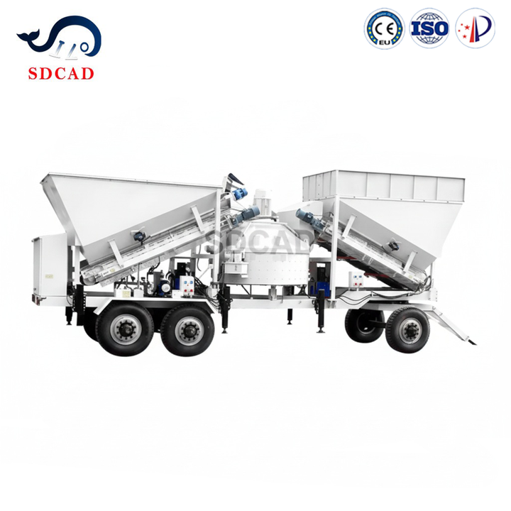 โรงงานผสมคอนกรีตเคลื่อนที่ระดับไฮเอนด์ YHZS75 พร้อมตัวเลือกเครื่องผสม Sicoma สำหรับคอนกรีตสำเร็จรูปคุณภาพสูงสำหรับงานเชิงพาณิชย์