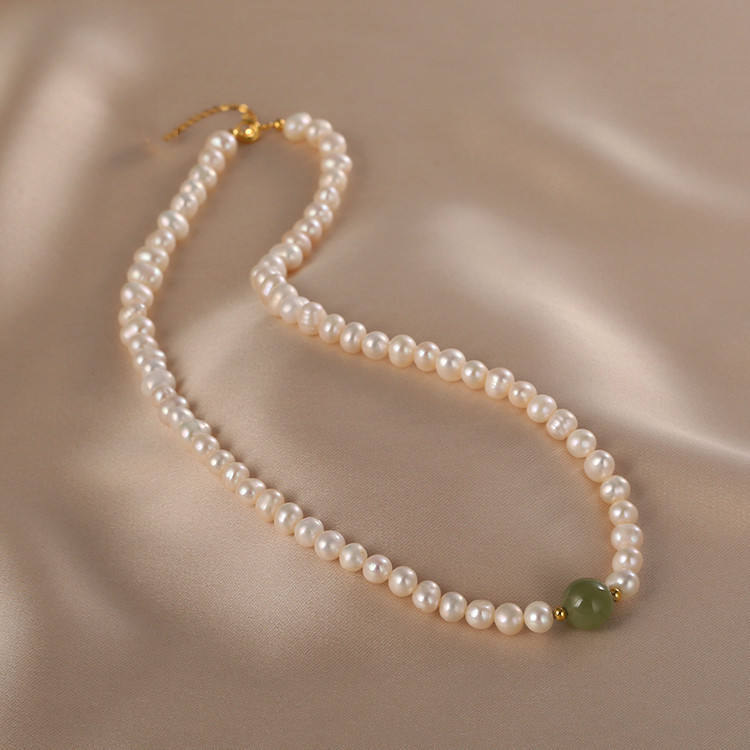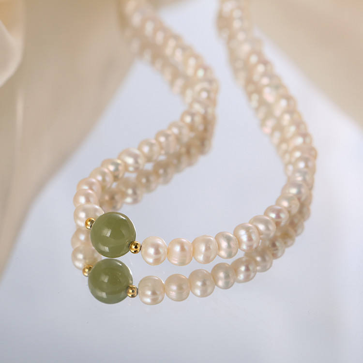 สร้อยคอมุกแท้ระดับไฮเอนด์ พร้อมจี้หินธรรมชาติสไตล์เรโทรและเฉพาะกลุ่ม ของขวัญสำหรับคุณแม่ผู้สูงอายุ