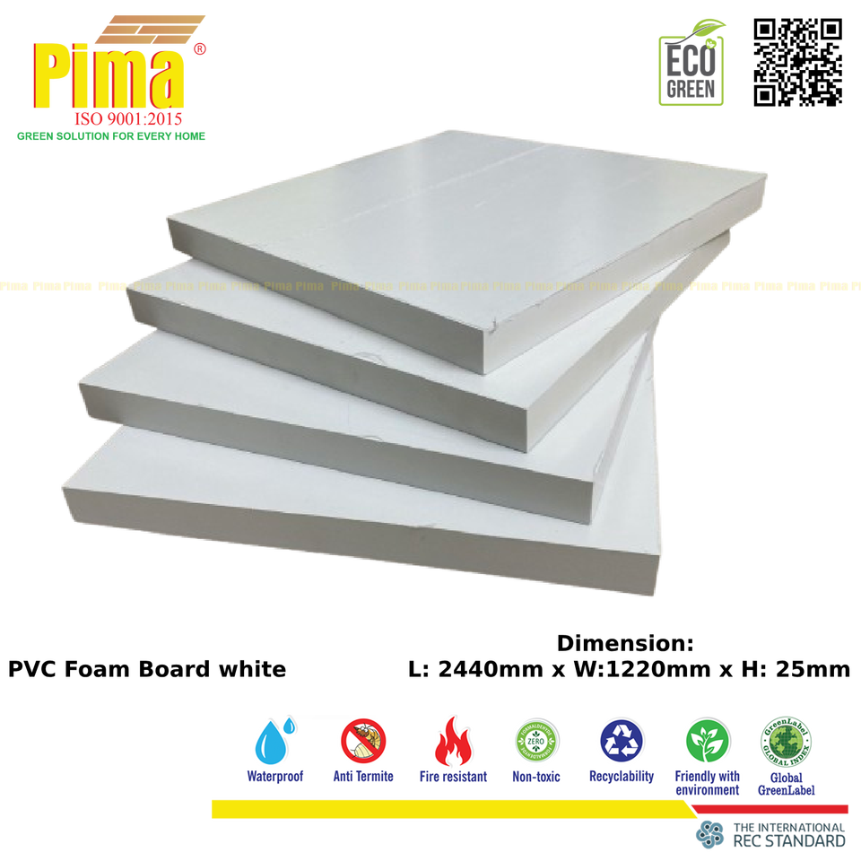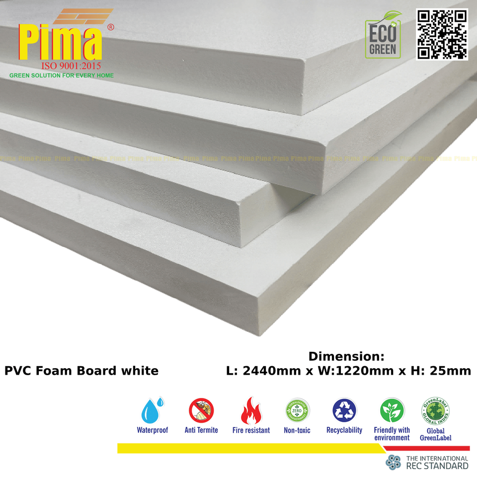 แผ่นโฟมพีวีซี WPC ระดับไฮเอนด์ความหนา25มม. ความหนา0.6กรัม/สีขาวความหนาแน่น cm3แผ่นพื้นผิวพลาสติกรีไซเคิลได้สำหรับการโฆษณา