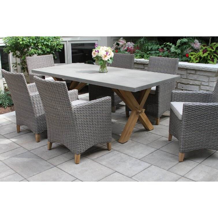 ชุดโต๊ะรับประทานอาหารระดับไฮเอนด์สำหรับสวนลานบ้าน พร้อมโต๊ะคอนกรีตกันน้ำและเก้าอี้หวาย 6 ตัว