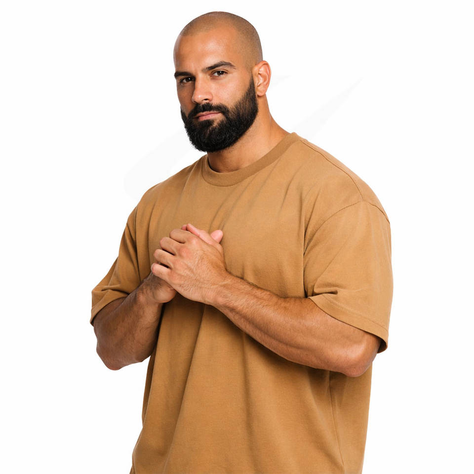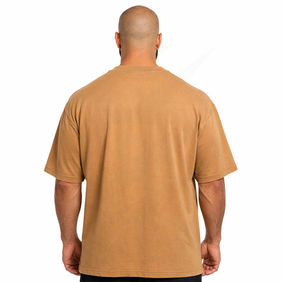 เสื้อยืดผู้ชายสไตล์วินเทจสตรีทแวร์ ขอบเสื้อทำสีซีดแบบดิสเทรส ผ้าคอตตอนเจอร์ซีย์ 260gsm สีเทา ย้อมสีด้วยเม็ดสีคุณภาพสูง