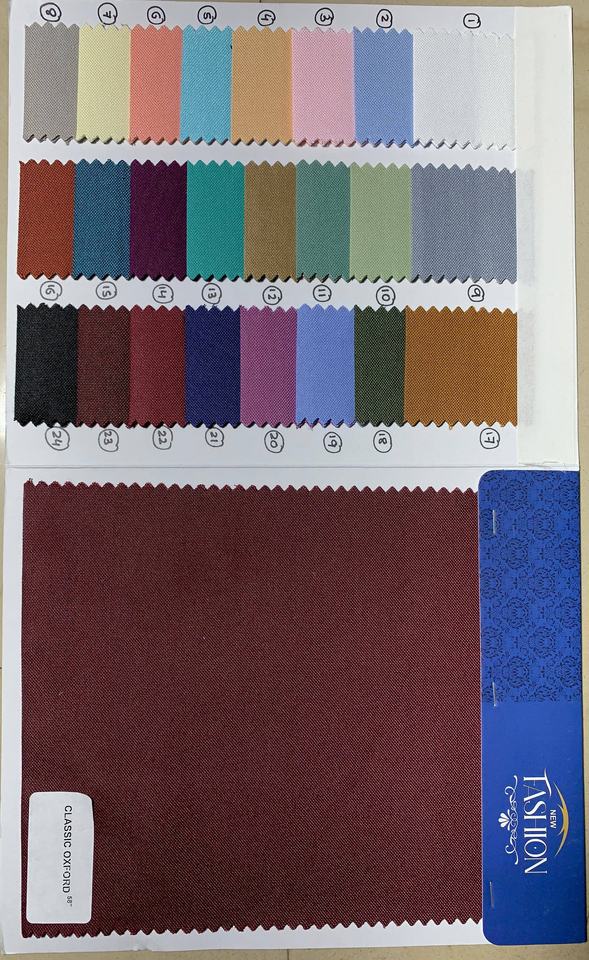 ผ้าอ๊อกซ์ฟอร์ดโพลีเอสเตอร์คอตตอนคุณภาพสูง เนื้อผ้านุ่มสบาย ดูแลรักษาง่าย เหมาะสำหรับแบรนด์เสื้อผ้าระดับหรู