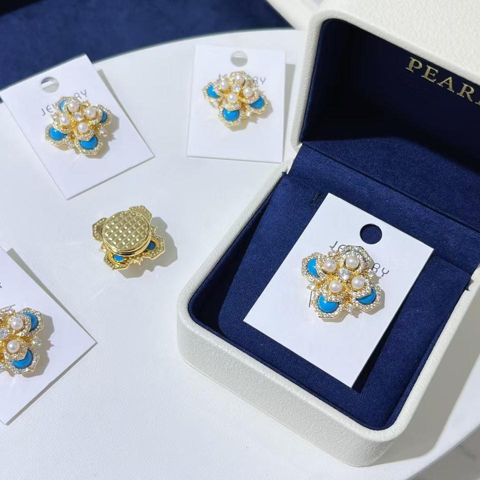 เข็มกลัดดอกไม้สีม่วงระดับไฮเอนด์ ประดับคริสตัลเทียม ติดด้วยแม่เหล็ก ใช้ตกแต่งเสื้อผ้าและชุดสูทได้หลากหลาย
