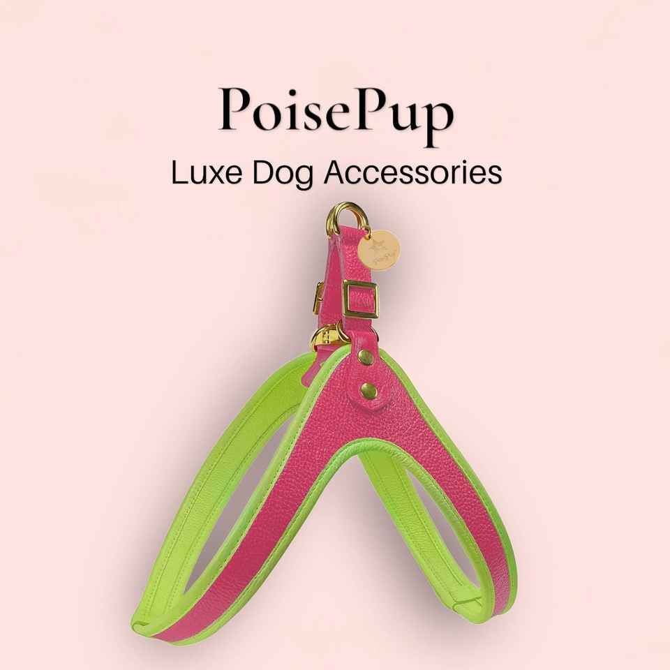 สายจูงสุนัขคุณภาพสูงทำด้วยมือด้วยหนังแท้และสายรัดปลดง่าย-สีชมพู | สีเขียว