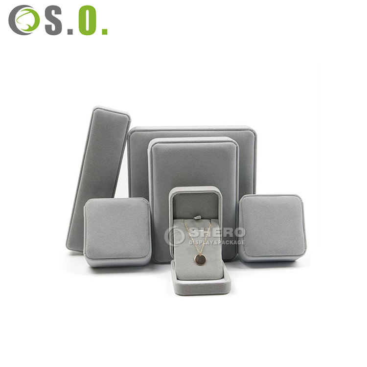กล่องใส่เครื่องประดับกำมะหยี่สีเทาคุณภาพสูง สำหรับสร้อยคอ ต่างหู แหวน กล่องของขวัญกำมะหยี่ กล่องเก็บเครื่องประดับ