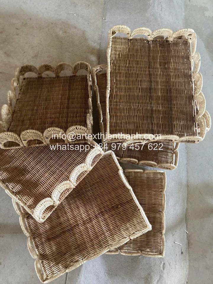 ถาดหวายสานมือคุณภาพสูง ขอบหยัก ใช้เป็นโต๊ะเสิร์ฟหรือตะกร้าตกแต่ง ขนาดและสีตามสั่ง รับผลิตแบบ OEM ODM จากโรงงานในเวียดนาม