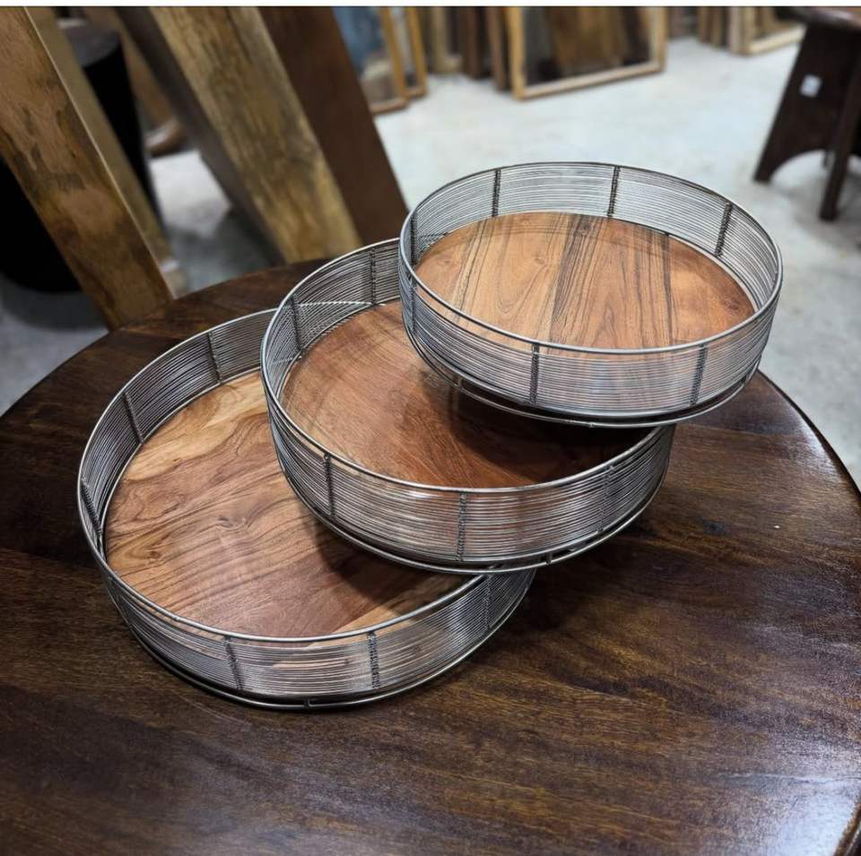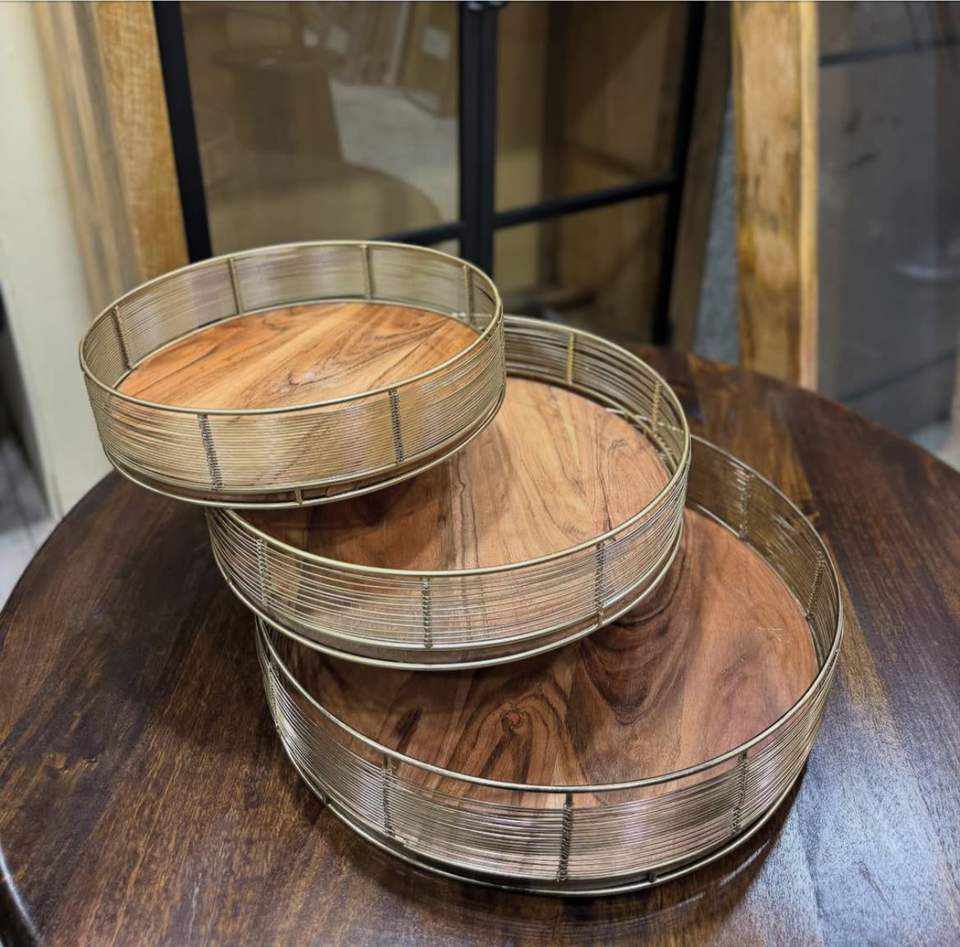 แผ่นชาร์จขัดเงาทำมือคุณภาพสูงถาดเสิร์ฟไม้ & โลหะทำด้วยมือสำหรับจานและชามงานปาร์ตี้