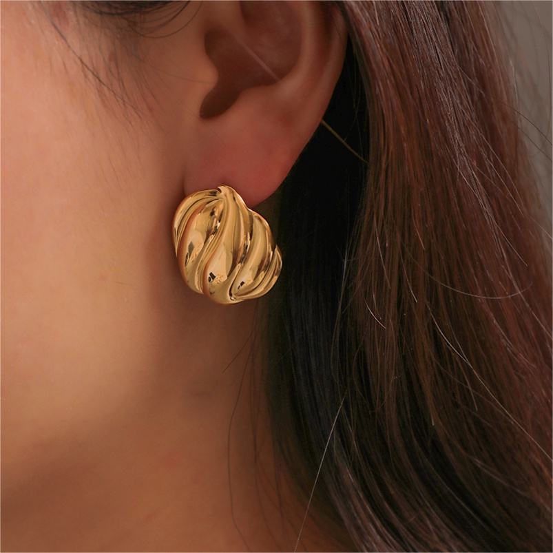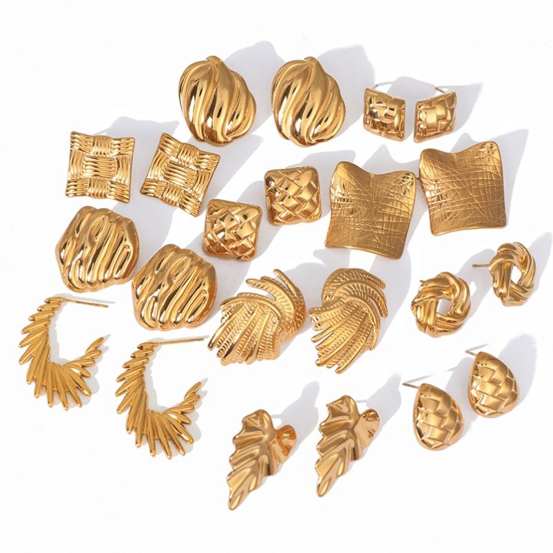 ต่างหูสตั๊ดจับจีบแนวย้อนยุคระดับไฮเอนด์ทำจากสเตนเลสสี่เหลี่ยมรูปทรงเรขาคณิตสุดหรูทันสมัยครบรอบปีทองแท้