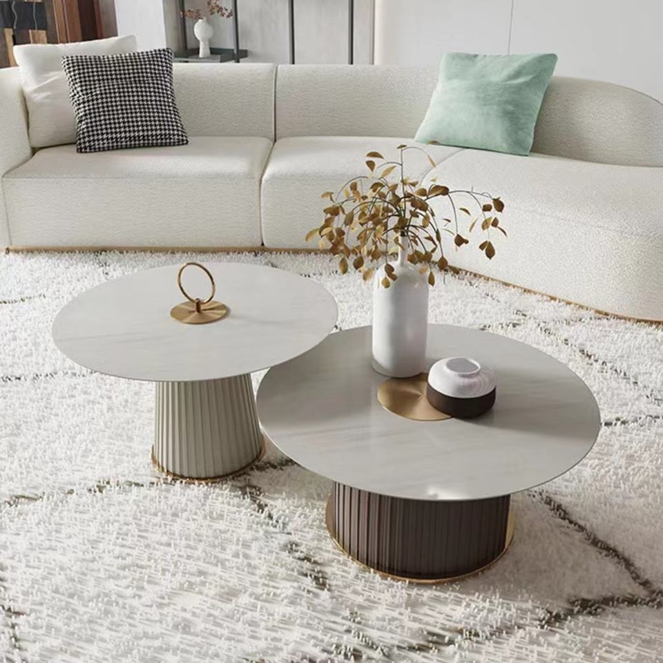 โต๊ะกาแฟทรงกลมระดับไฮเอนด์ ดีไซน์ทันสมัย หรูหรา ทำจากสแตนเลสและทองเหลือง หมุนได้ สีดำและสีทอง