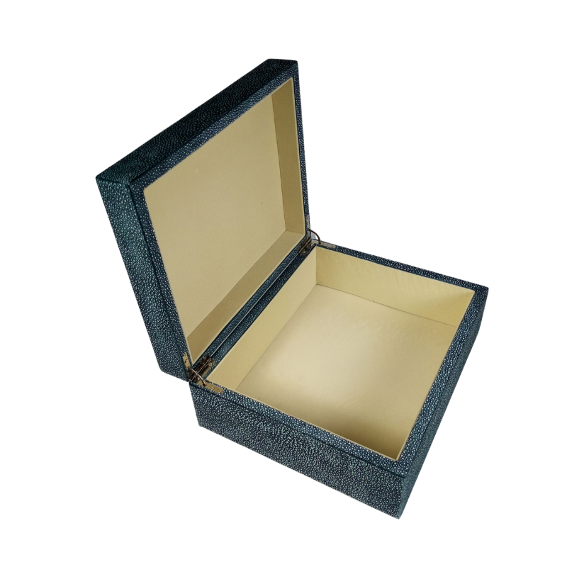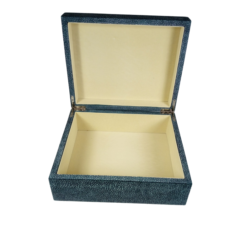 กล่องเครื่องประดับ shagreen ระดับไฮเอนด์ผ้าดิบสีเทาภายในสำหรับ100% เก็บของหรูหราทำด้วยมือจากเวียดนาม